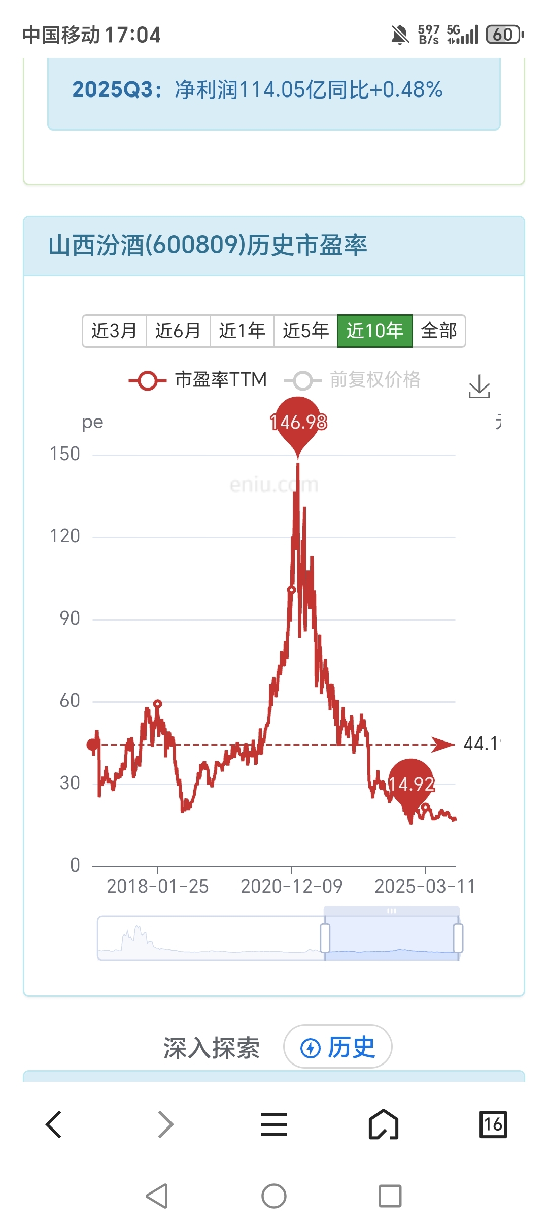 $山西汾酒(SH600809)$ 当初146年的市盈率真是让人叹为观止,五年了,还在消化估值呢