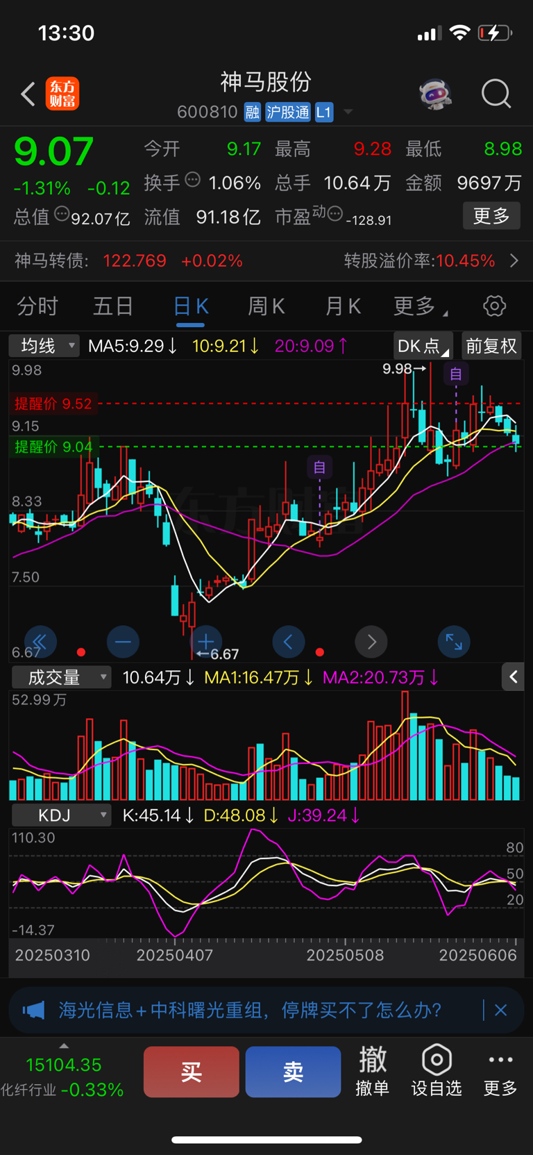 $神马股份(SH600810)$ 早上904加了100手成交了,跟它拼了