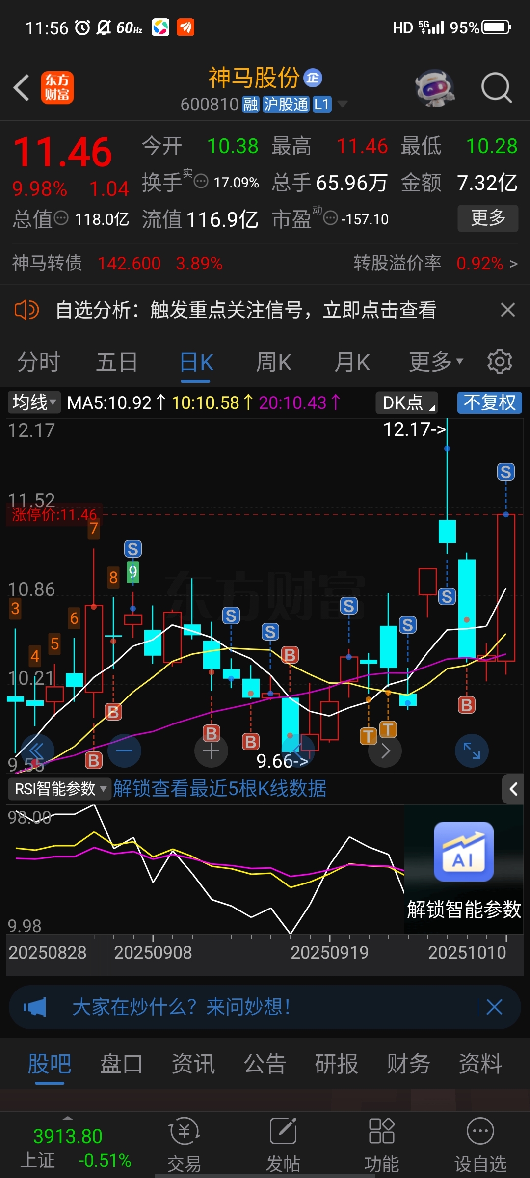 $神马股份(SH600810)$ 哈哈哈,韭菜们爽不爽,这股买了大半年了,什么尿性心里还是很清楚的,就是为了债转股,还想连板
