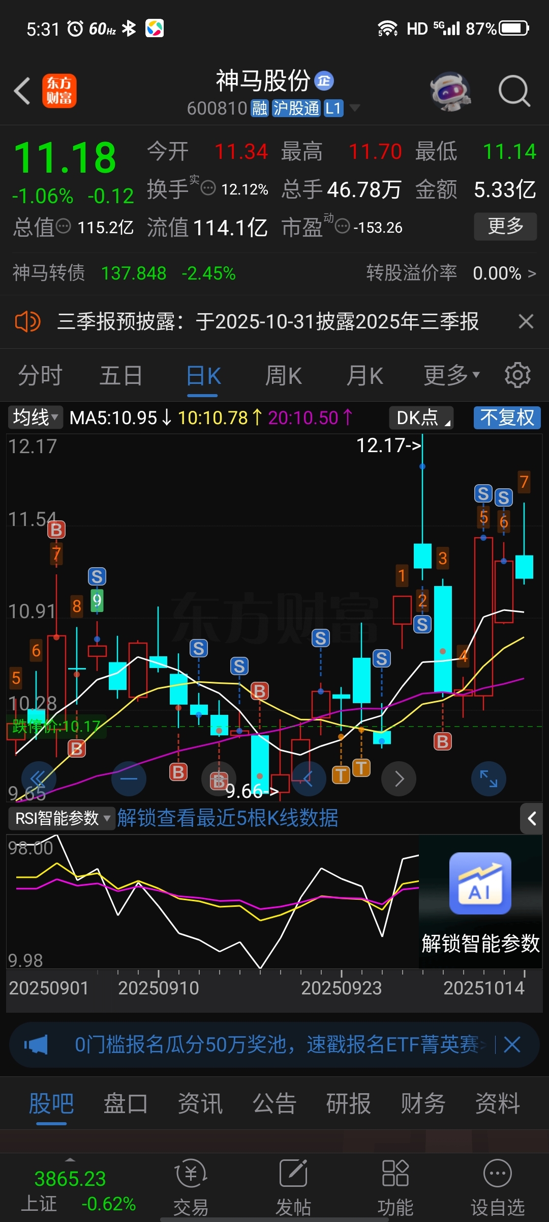 $神马股份(SH600810)$ 还少一根大阴线,这几天估计又要搞债转股了,都没溢价了,大部分人都不看好这股,正溢价5%以上再来买,现在买可转债随时砸过来