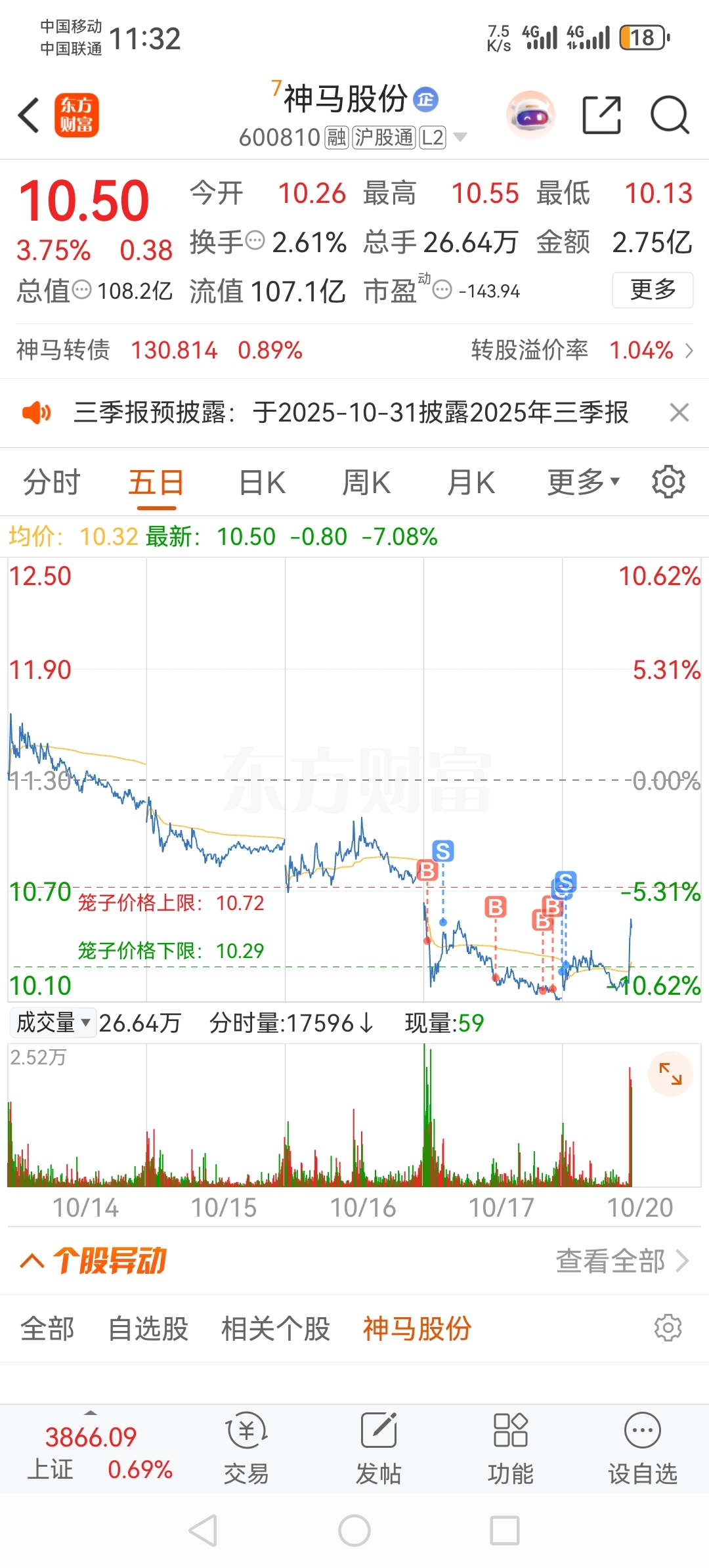 $神马股份(SH600810)$ 礼拜四溢价2个点转过来,礼拜五破10.53一路加仓 早盘回本卖了 祝留下的兄弟发财 收盘站稳10.53 恭喜满足强赎第13天