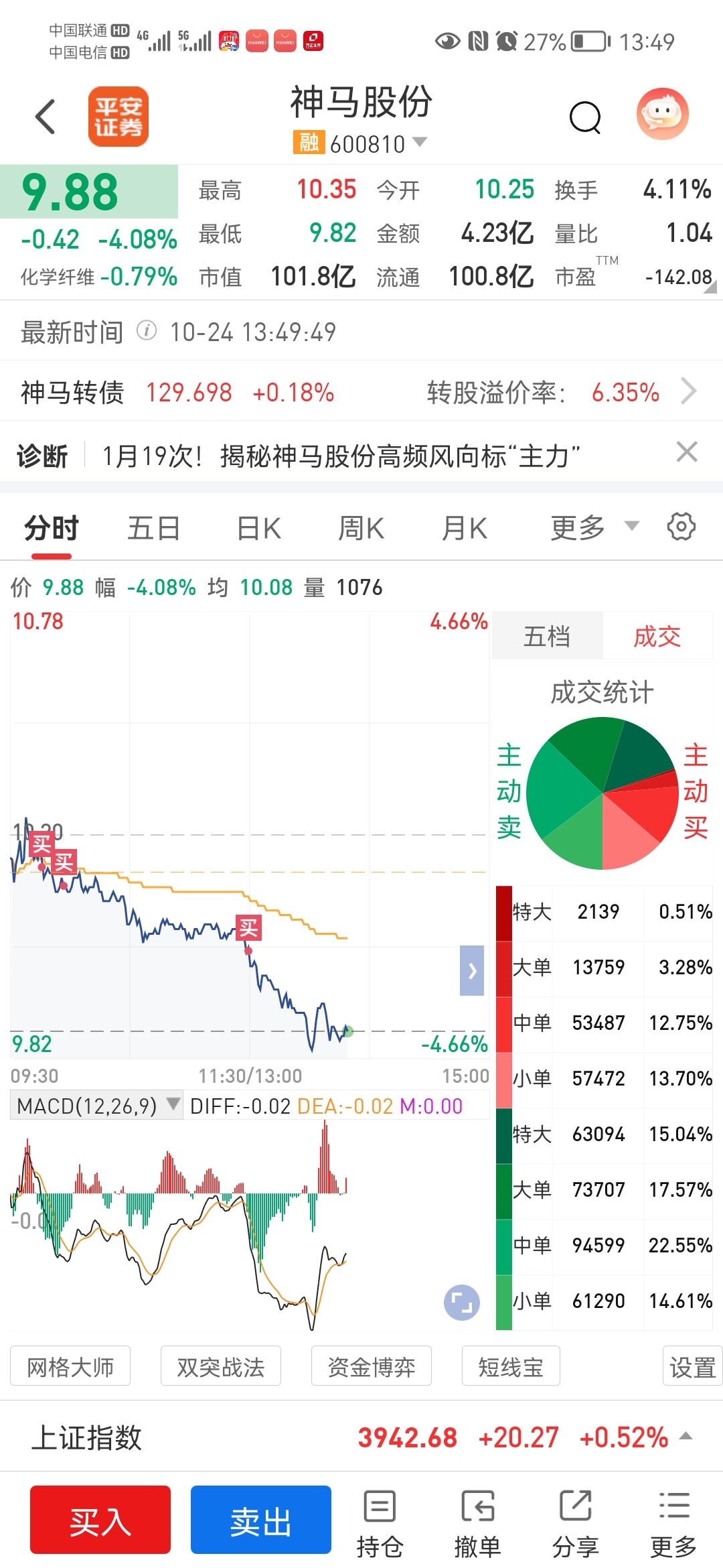 $神马股份(SH600810)$ 不管别人怎么想,我今天跑步进场