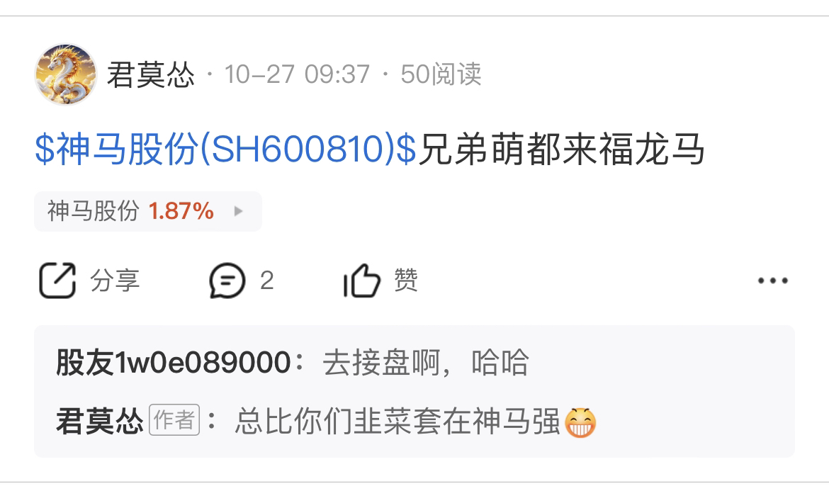 $神马股份(SH600810)$ 叫你们都来干福龙马