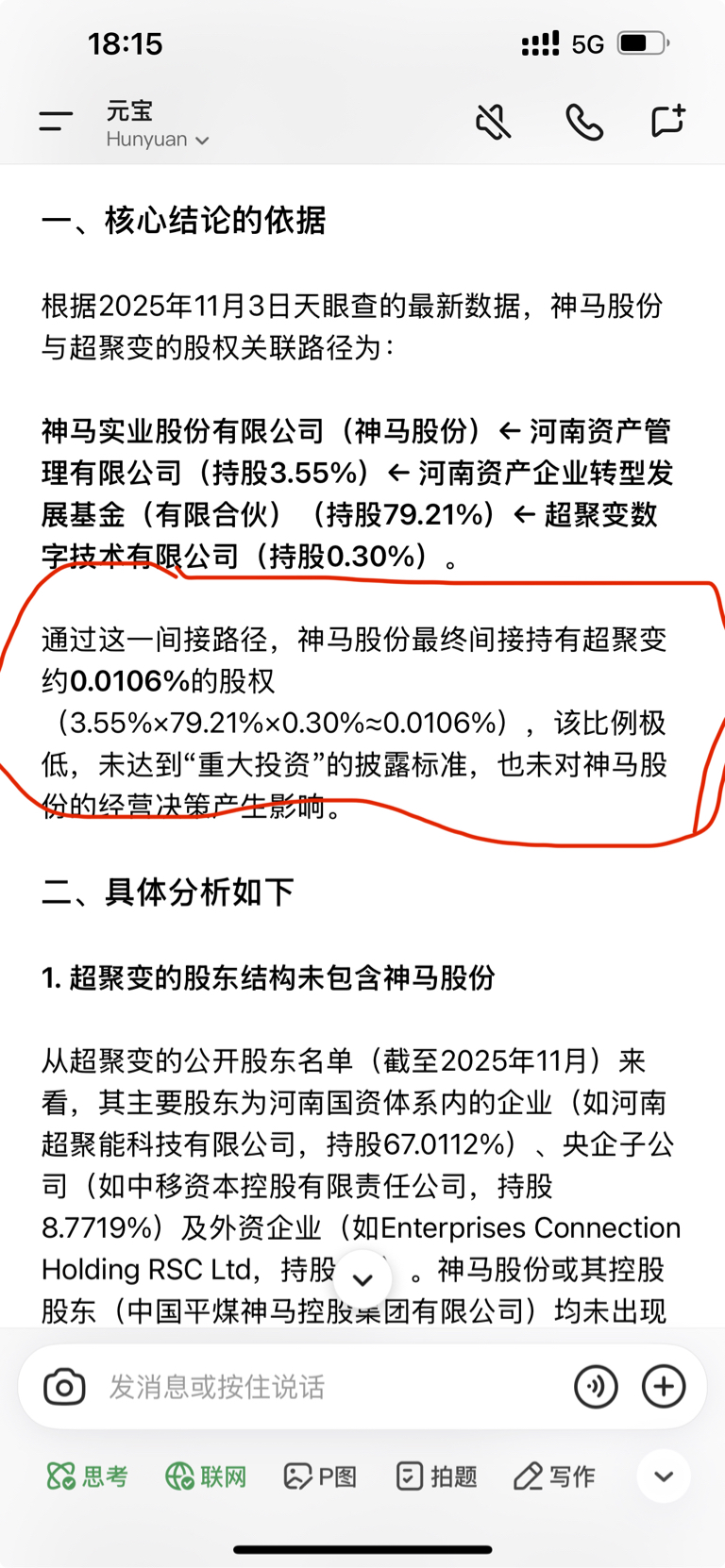 神马股份最终间接持有超聚变约0.0106%的股权(3.55%×79.21%×0.