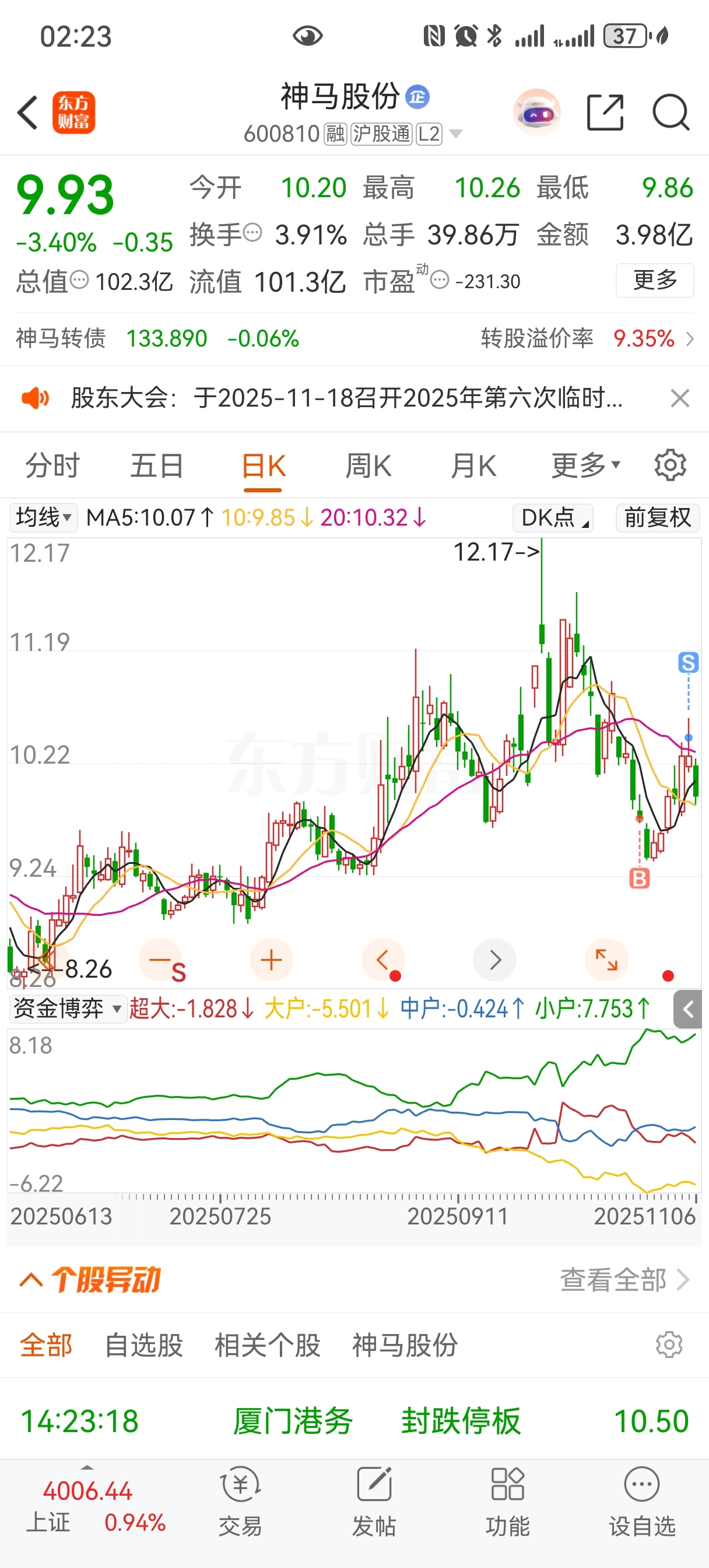 $神马股份(SH600810)$ 又可以慢慢建仓了.