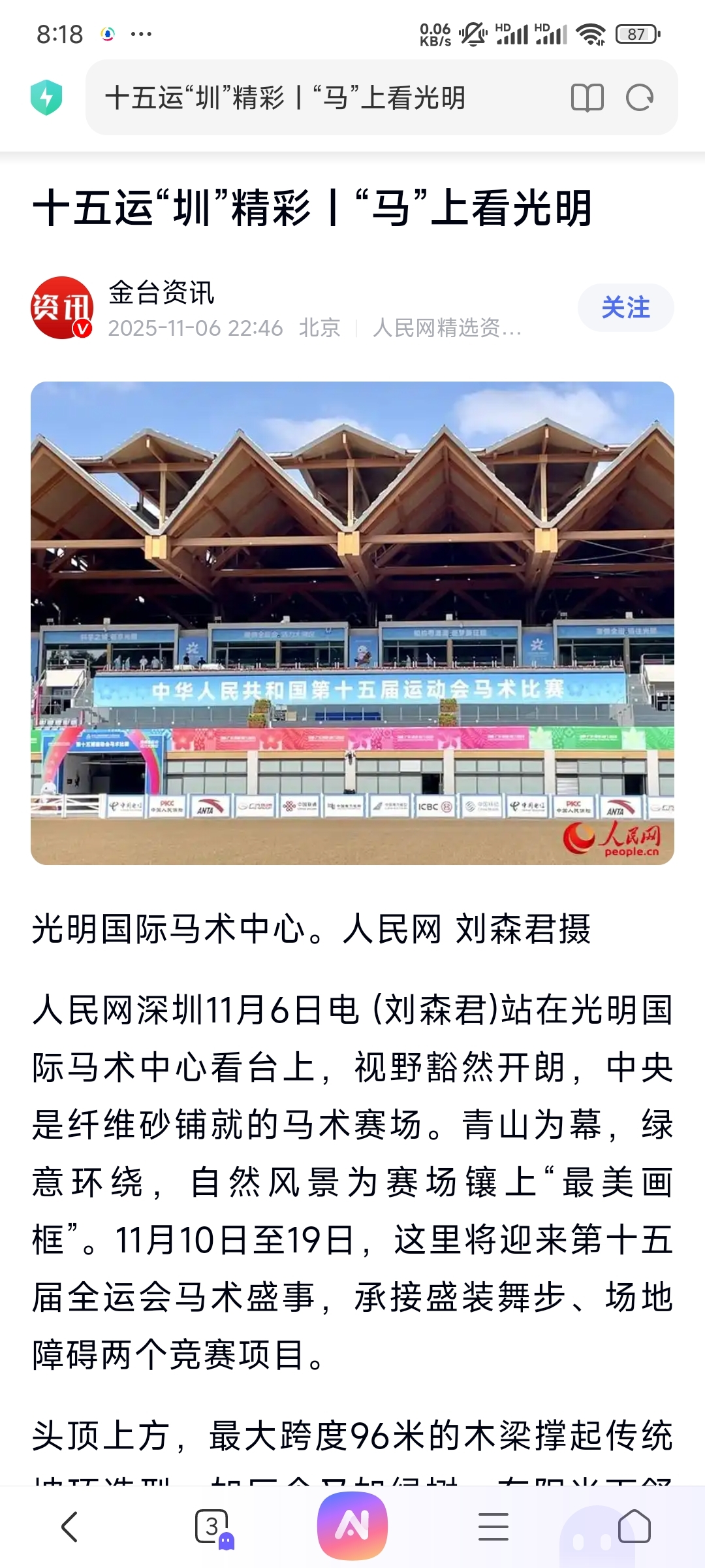 十五全运会马术项目比赛下周一开始在深圳光明国际马术中心即将开赛,届时必将万马奔腾