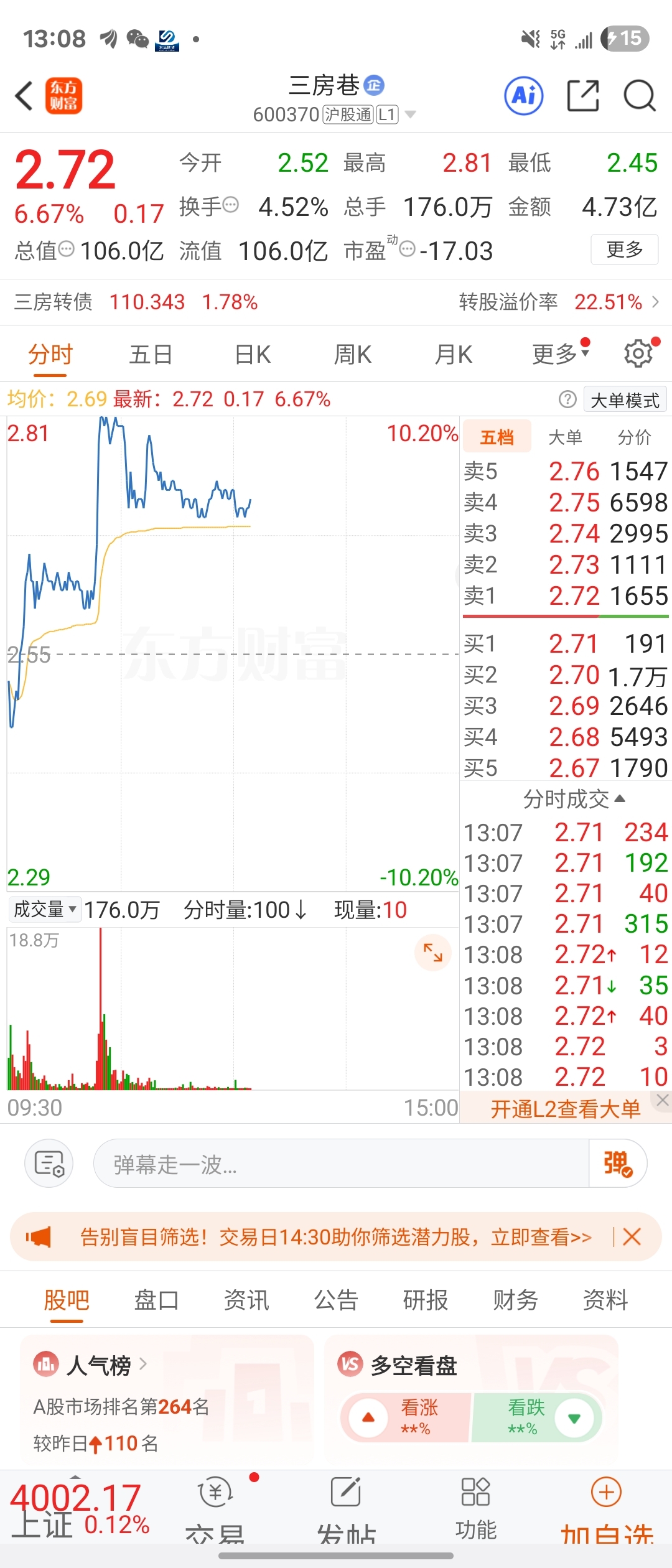 $神马股份(SH600810)$ 一定要做先涨停的股,割了神马,买了三房巷