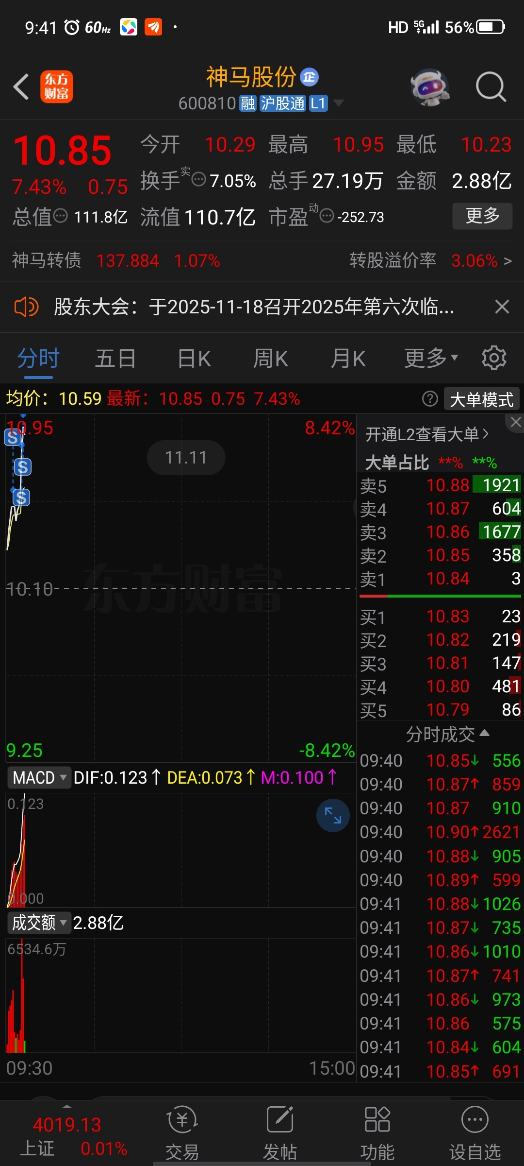 $神马股份(SH600810)$ 一群小丑,敢涨停一会全砸给你们
