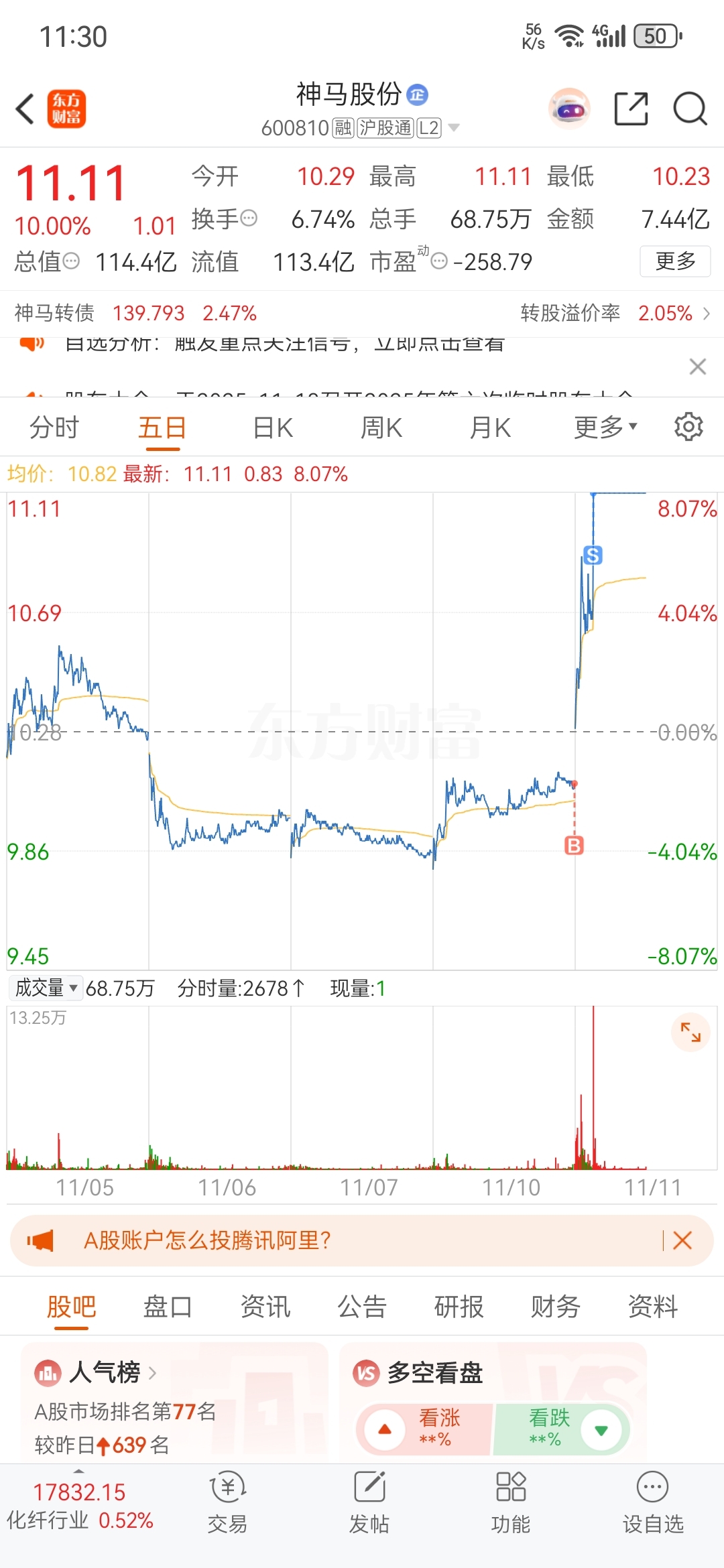 $神马股份(SH600810)$ 难道我卖飞了?!