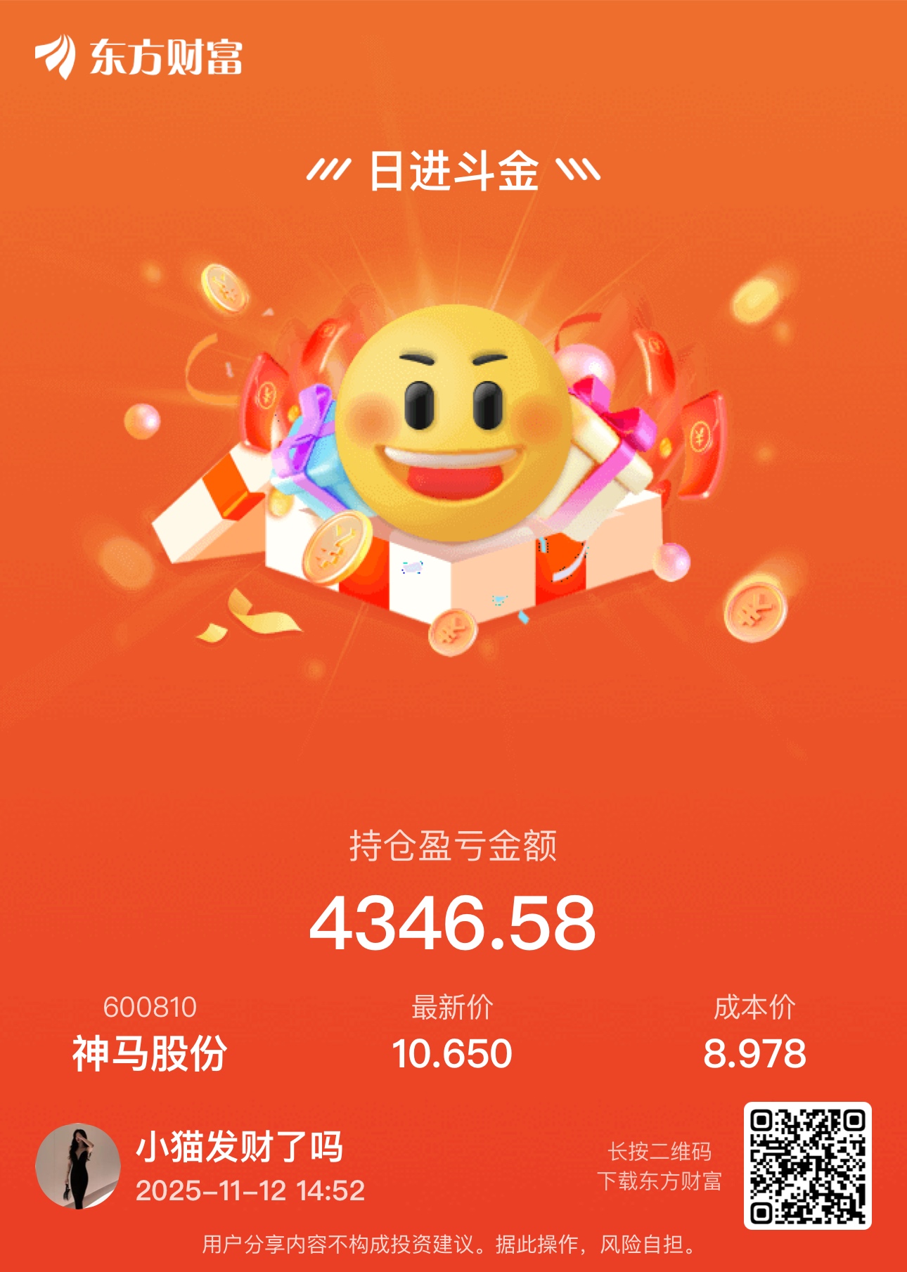 $神马股份(SH600810)$ 尾盘买了点,t到8.9了,马太恶劣了,只要大涨第二天必是跌,继续等t