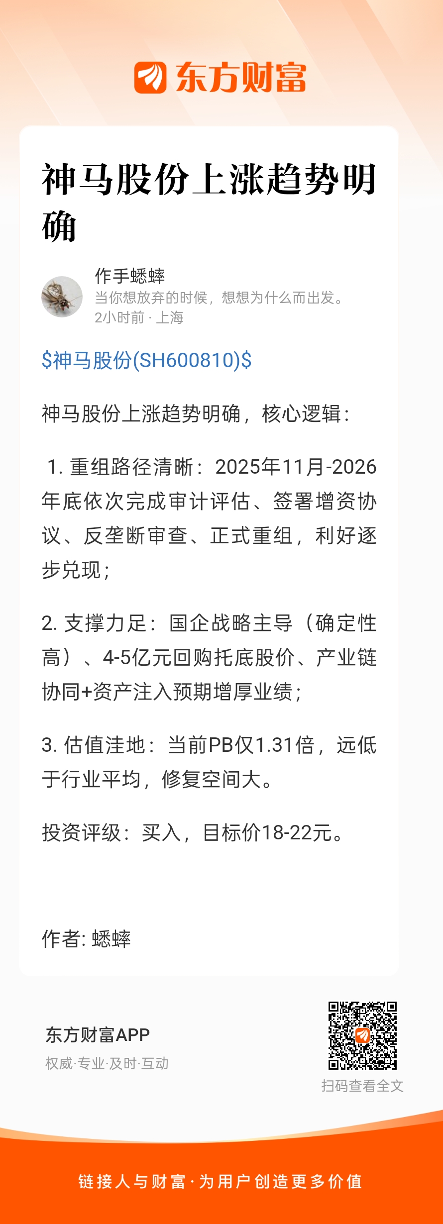 神马股份上涨趋势明确,核心逻辑: