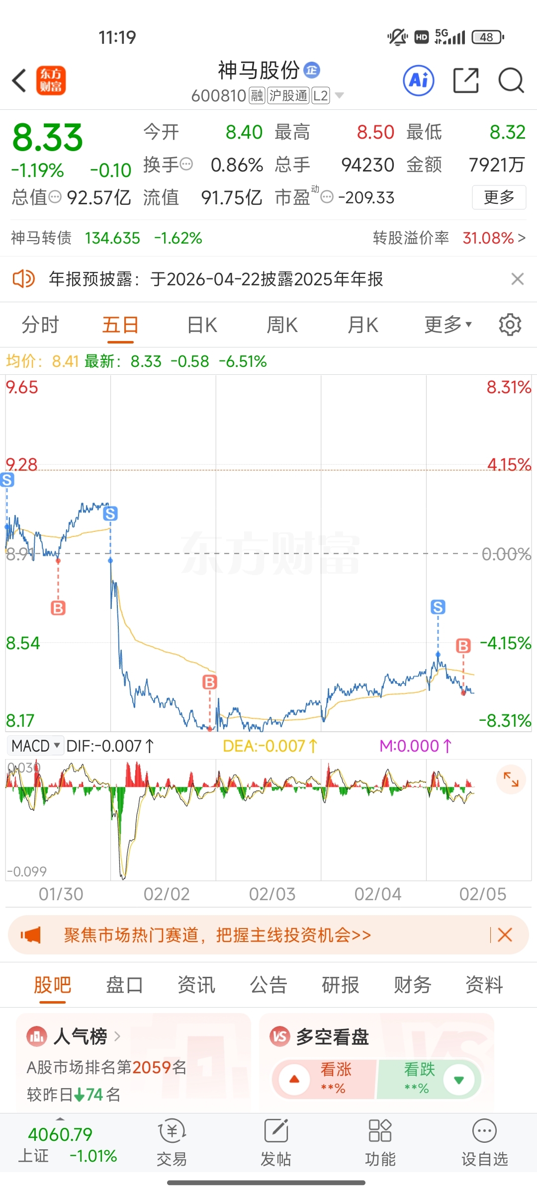 $神马股份(SH600810)$ 已加仓救市,家人们放心。