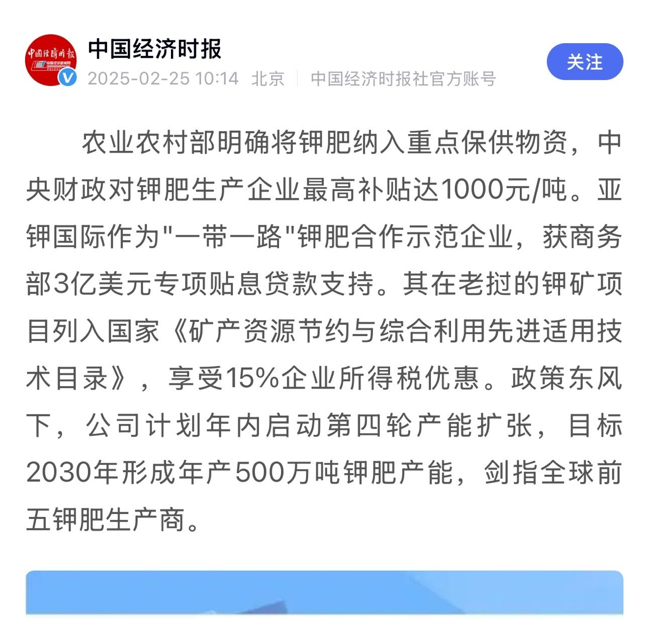 $东方集团(SH600811)$ 这个政策会加快大资金看上从而推进东方海钾投产进程!