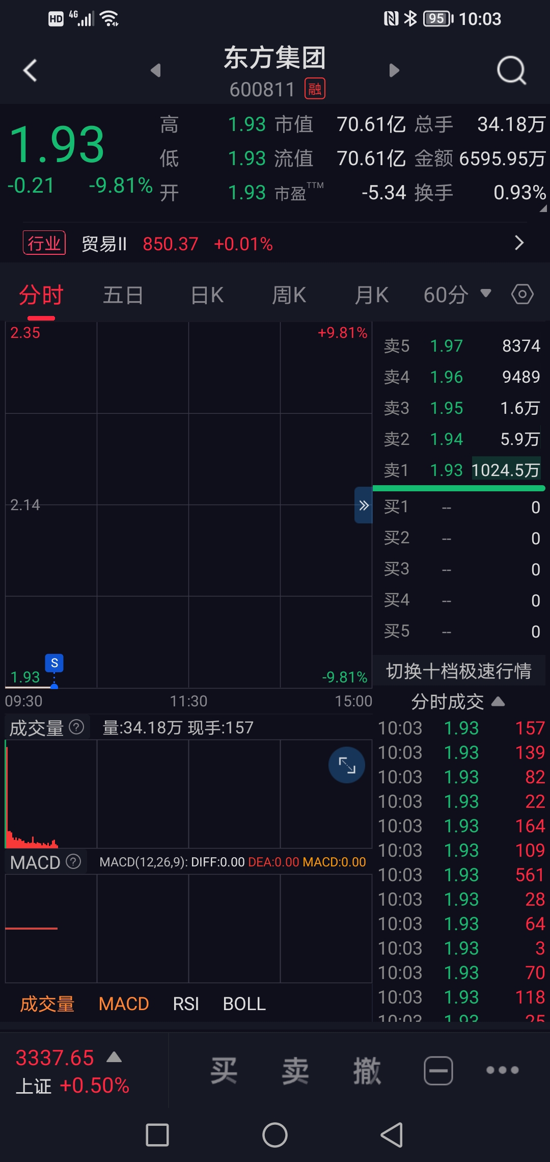 $东方集团(SH600811)$ 天雷滚滚,上周五挂单,终于出来了