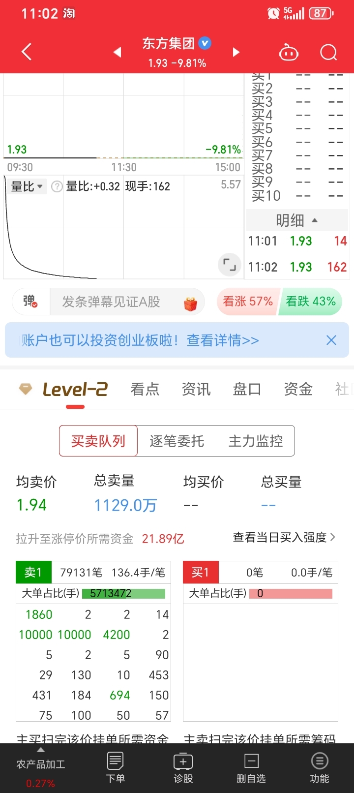 $东方集团(SH600811)$ 大家看看是不是没有天理,又把大单在前面,我又排到后面