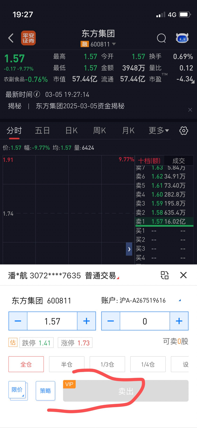 $东方集团(SH600811)$ VIP通道隔夜盘挂了两天了还没出去