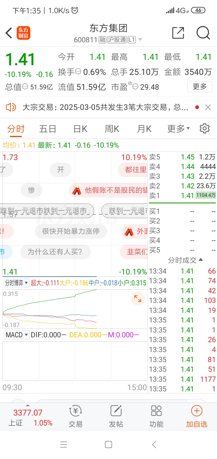 $东方集团(SH600811)$ 跌到一元可以退市了吧