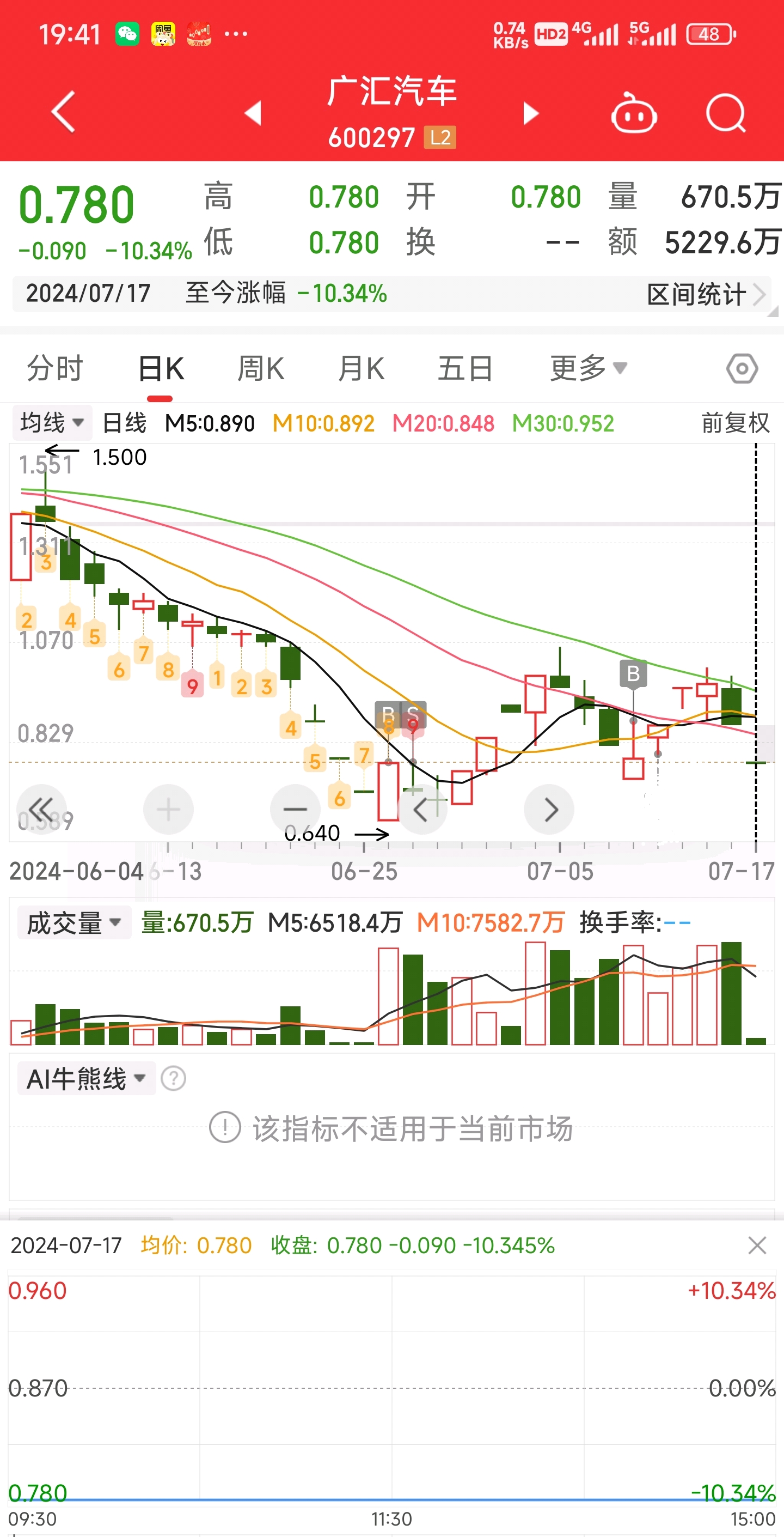 $东方集团(SH600811)$ $广汇汽车(SH600297)$ 抄底王折戟广汇汽车面值退市(0.78终点站)