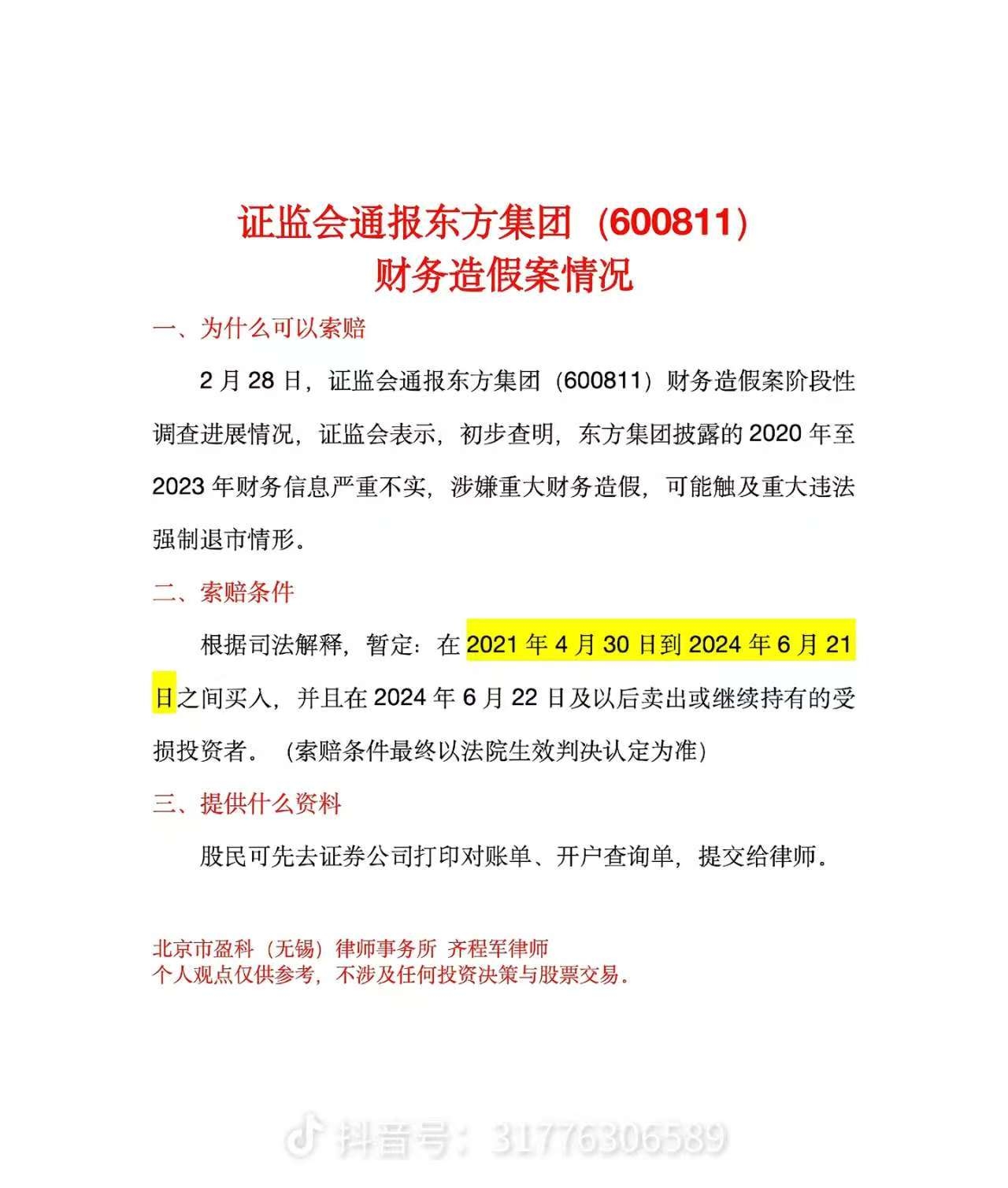 $东方集团(SH600811)$ 兄弟们可以起诉