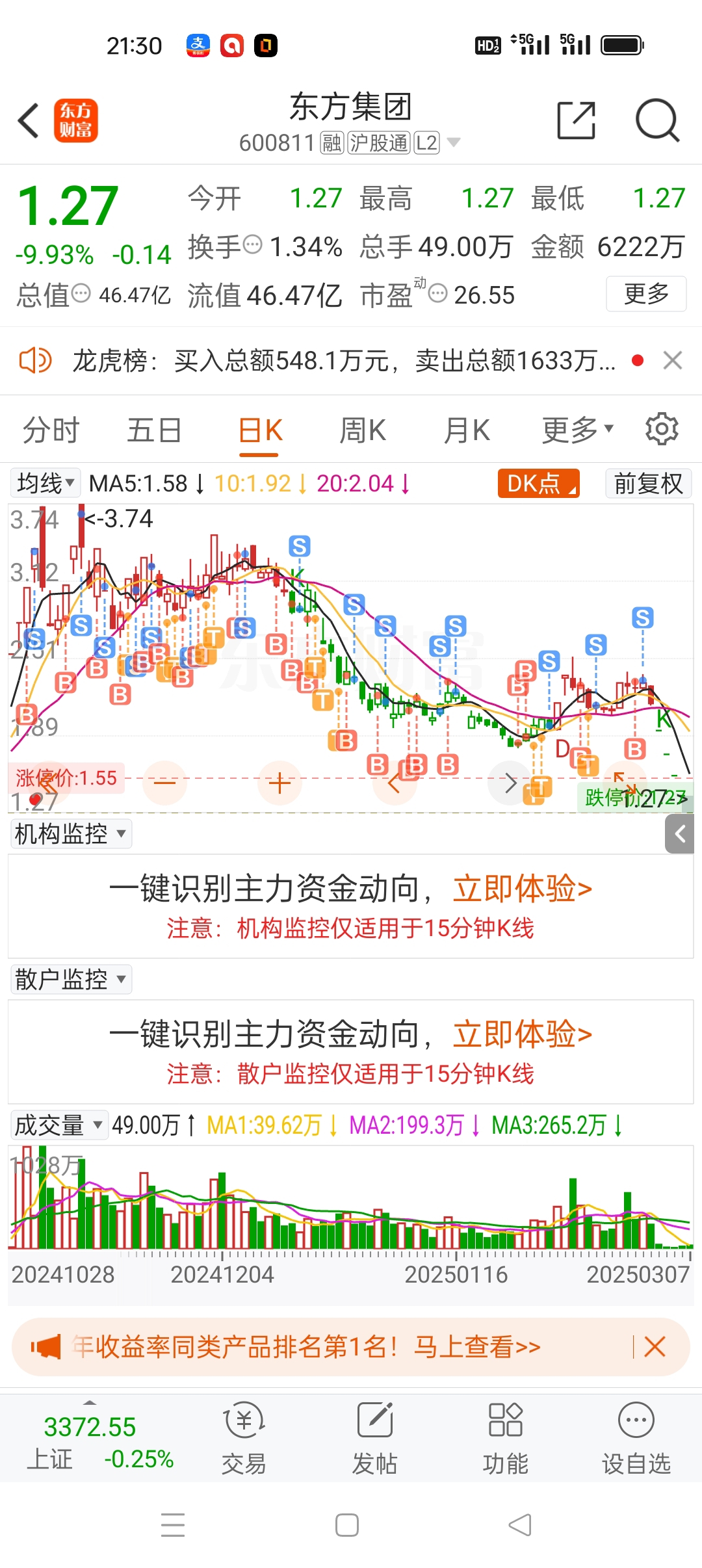 $东方集团(SH600811)$ 太特么吓人了去年十月份二十万开始现在剩七万差点都扔在东方集团准备销户不玩了