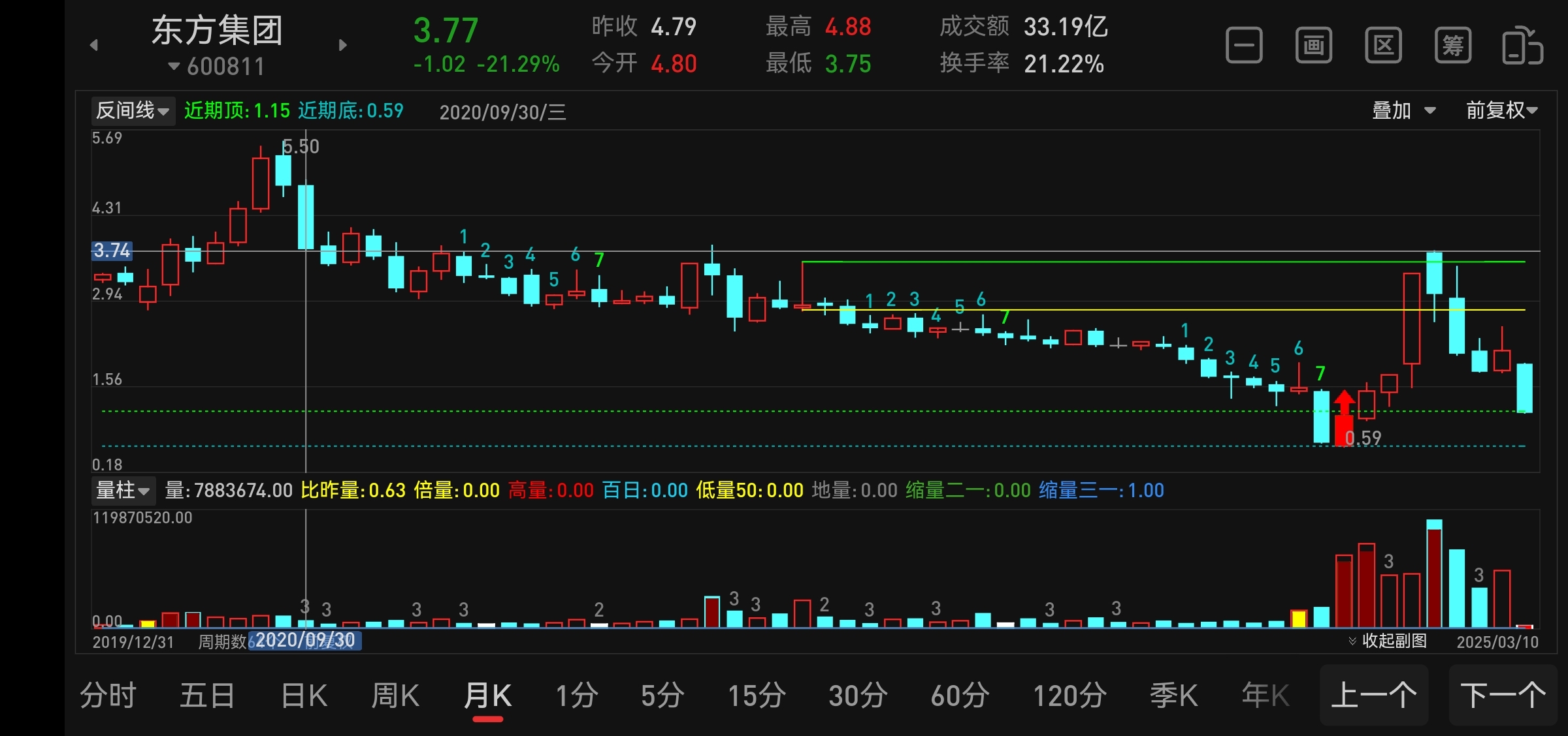 $东方集团(SH600811)$ 反弹到位下跌,一买二拉三冲顶,四放倒钩,五归一。好多人套在钩子上(1.82/2.52)。