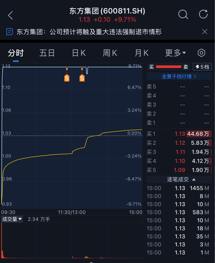 $东方集团(SH600811)$ 看来昨天卖出是正确的,情况不对,这是真要退市了