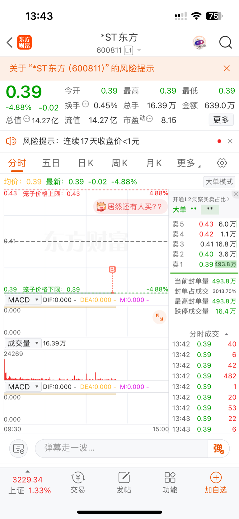 $*ST东方(SH600811)$ 体验一下退市的感觉