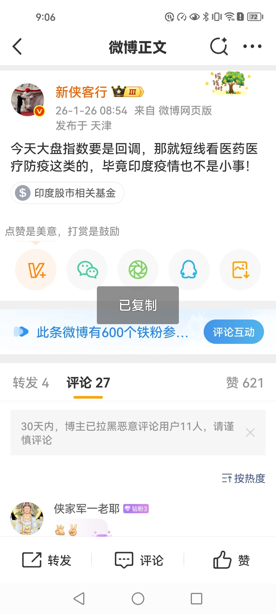 今天大盘指数要是回调,那就短线看医药医疗防疫这类的,毕竟印度疫情也不是小事