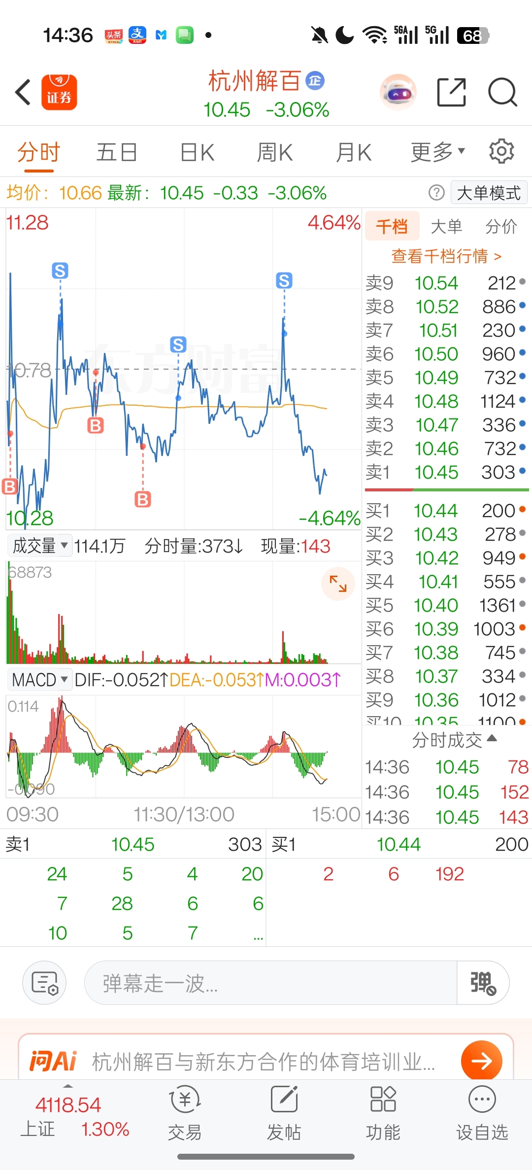 $杭州解百(SH600814)$ 连板,首阴没有问题 调整那么点而已,全仓做t.降低成本。