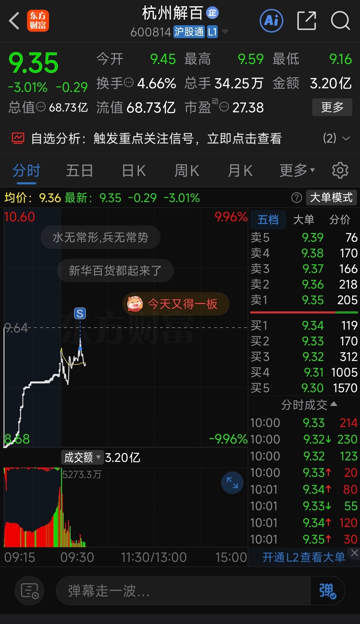 $杭州解百(SH600814)$ 大大的教训,以后要时刻提醒自己