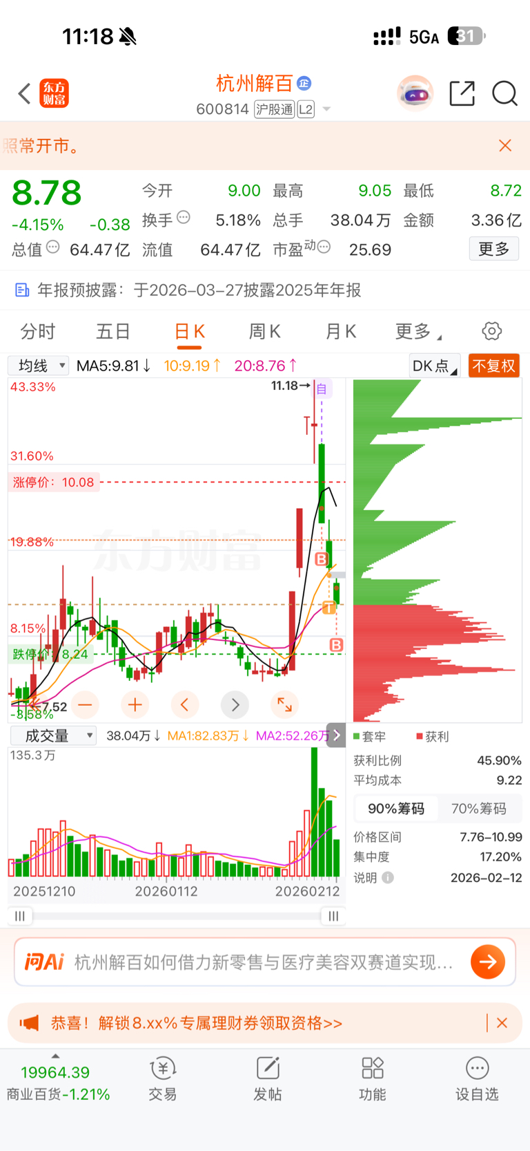 $杭州解百(SH600814)$ 麻了麻了