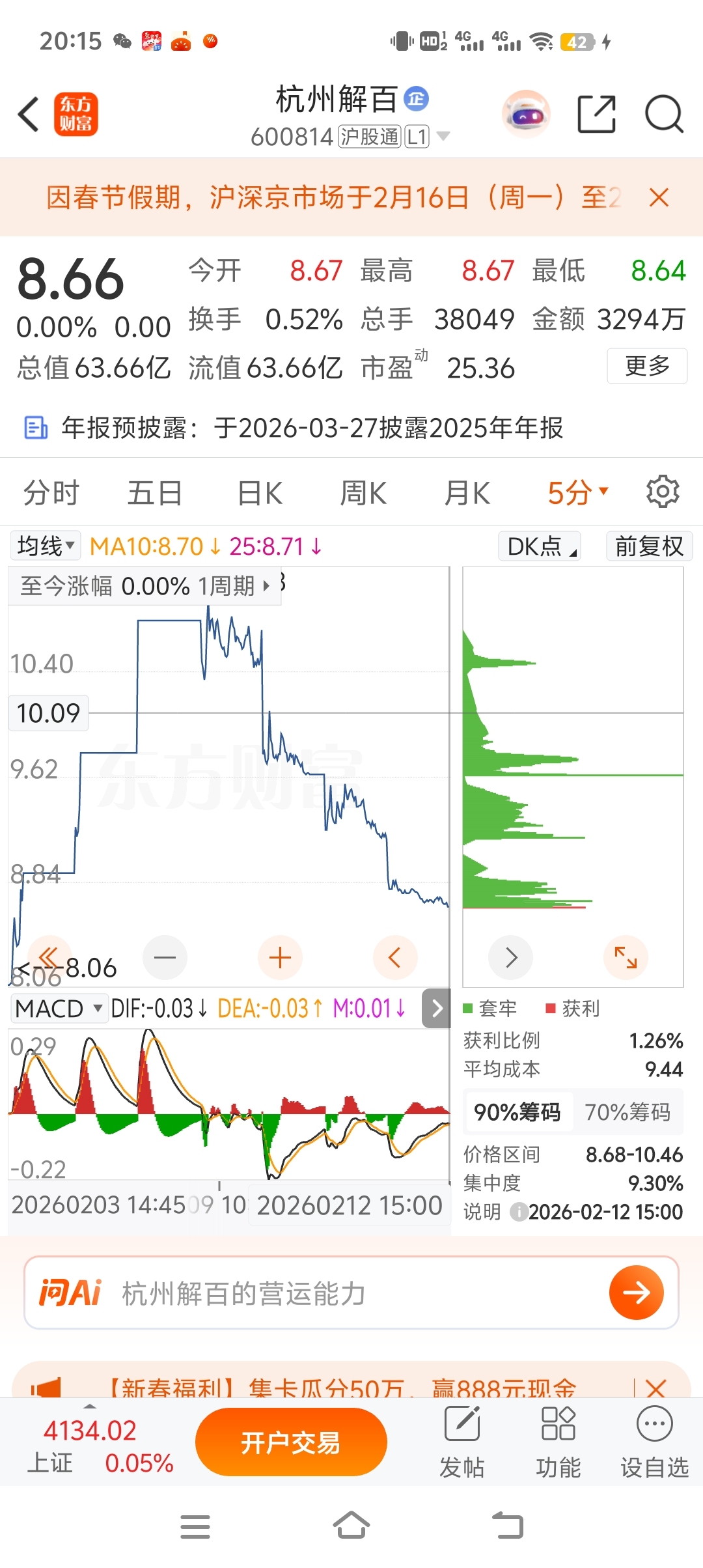 $杭州解百(SH600814)$ 五分钟筹码。大家一起砸盘,赶紧砸