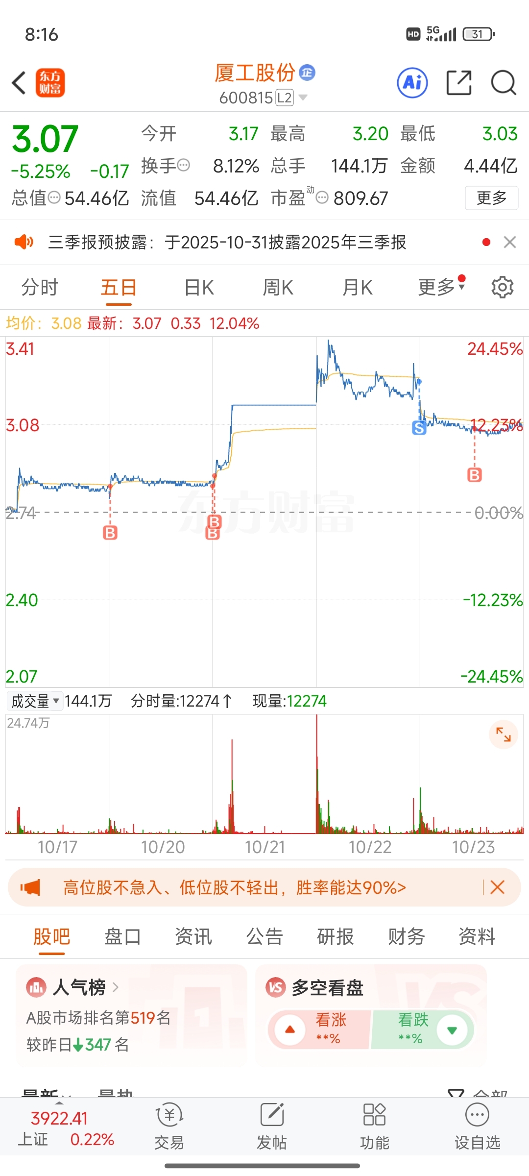 $厦工股份(SH600815)$ 主力要是看到了明天会不会在跌一波,跌了我更喜欢