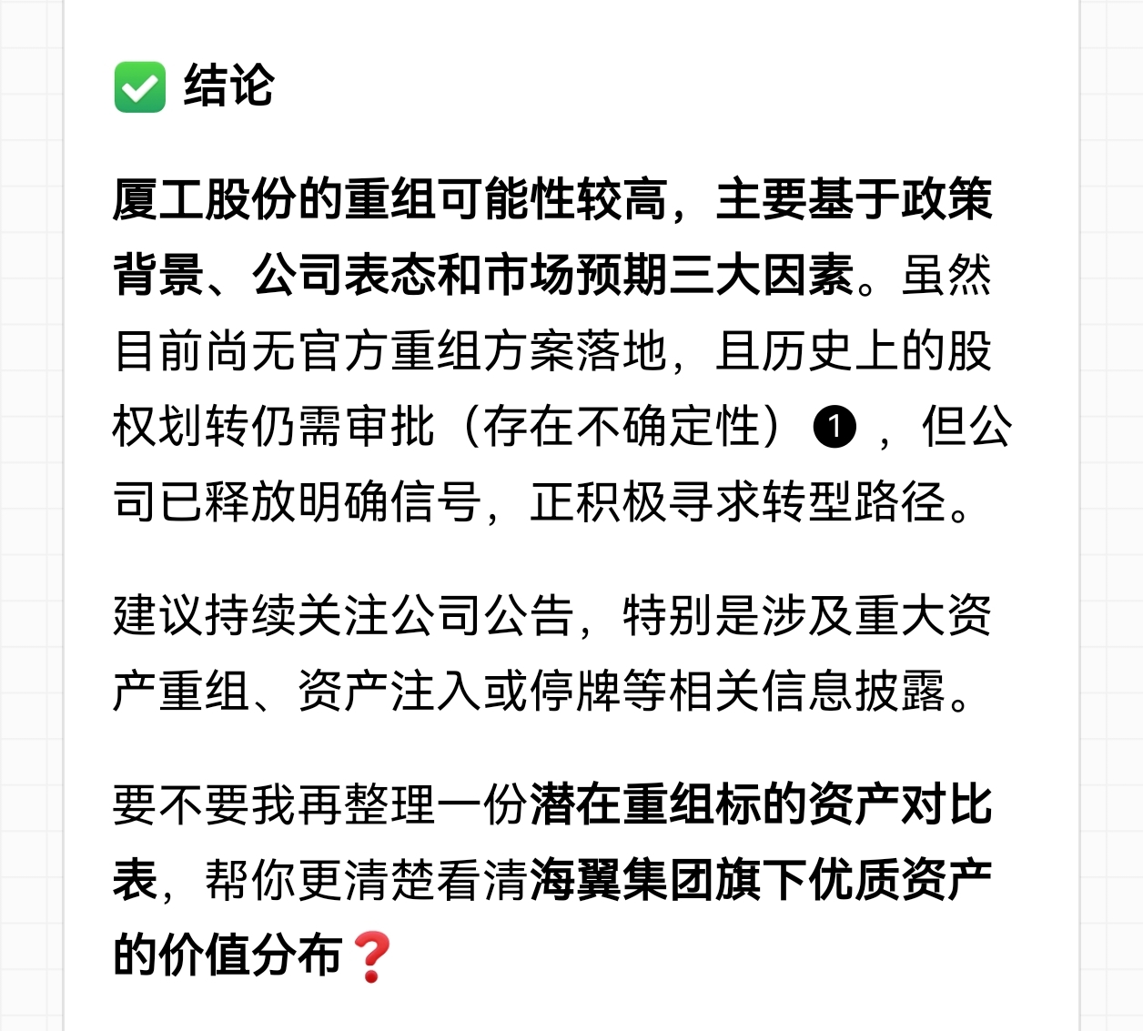 $厦工股份(SH600815)$ 重组的可能性非常之高 99.9%。现在就看什么时间重组。