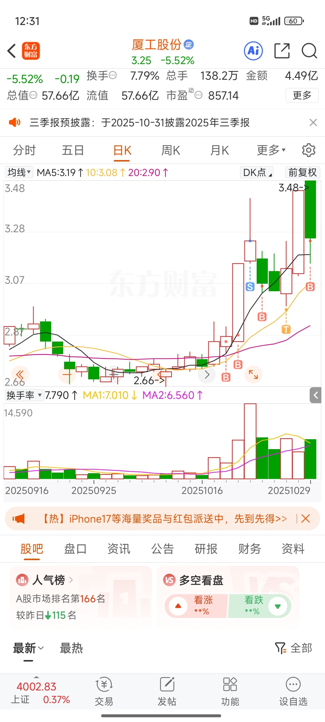 $厦工股份(SH600815)$ 主力你看到了吗,放心你吃不了我的,继续跌呀明天继续抄你