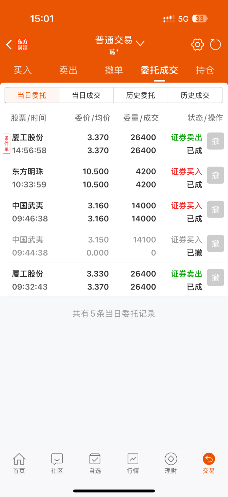 $厦工股份(SH600815)$ 触发条件单了 算了算了 ,明天看情况 继续搞中国武夷吧