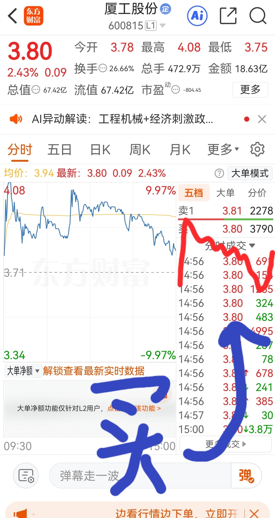 $厦工股份(SH600815)$ 周五开盘最低价,周一涨停板,周五下跌尾市抢筹码,立贴为证!