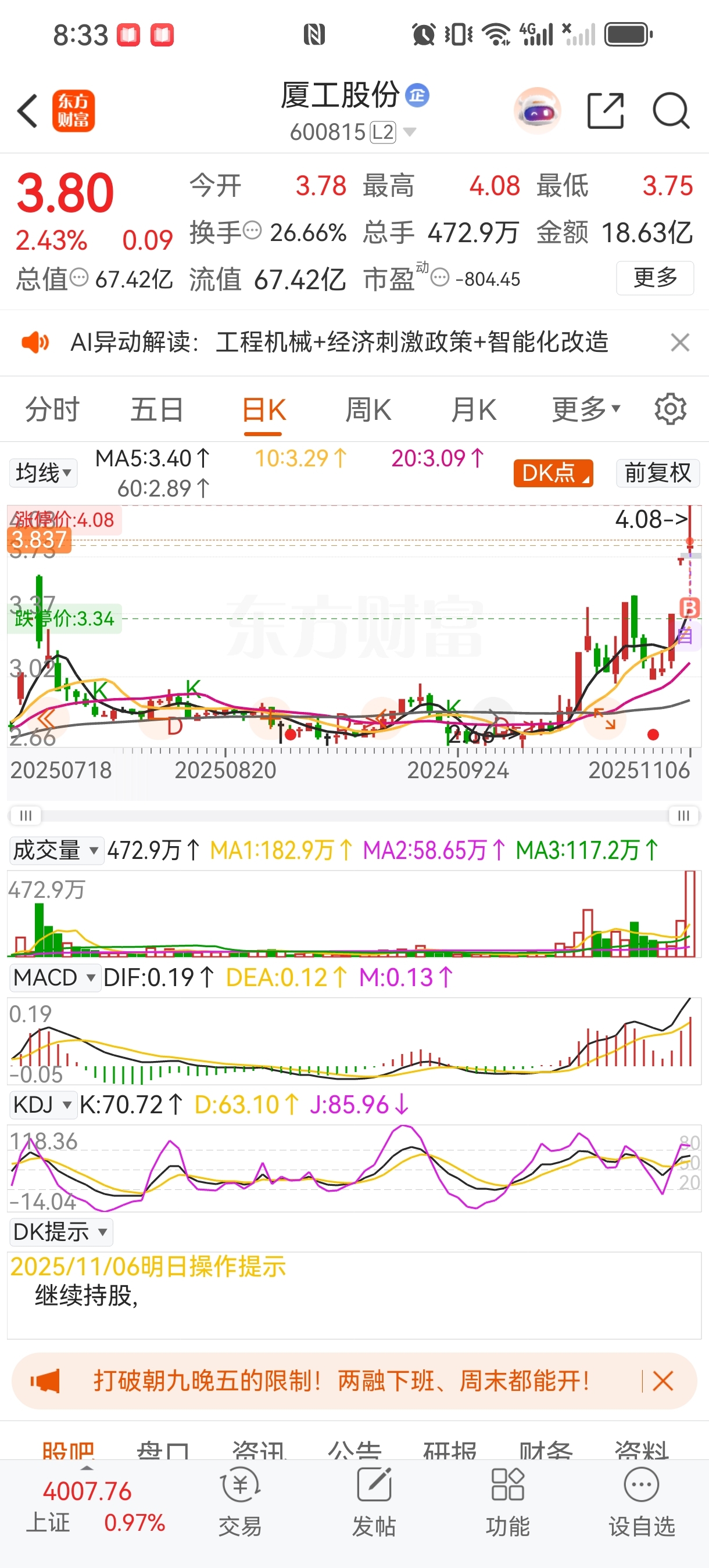 $厦工股份(SH600815)$ 箱体突破却没封板,猜猜为什么?