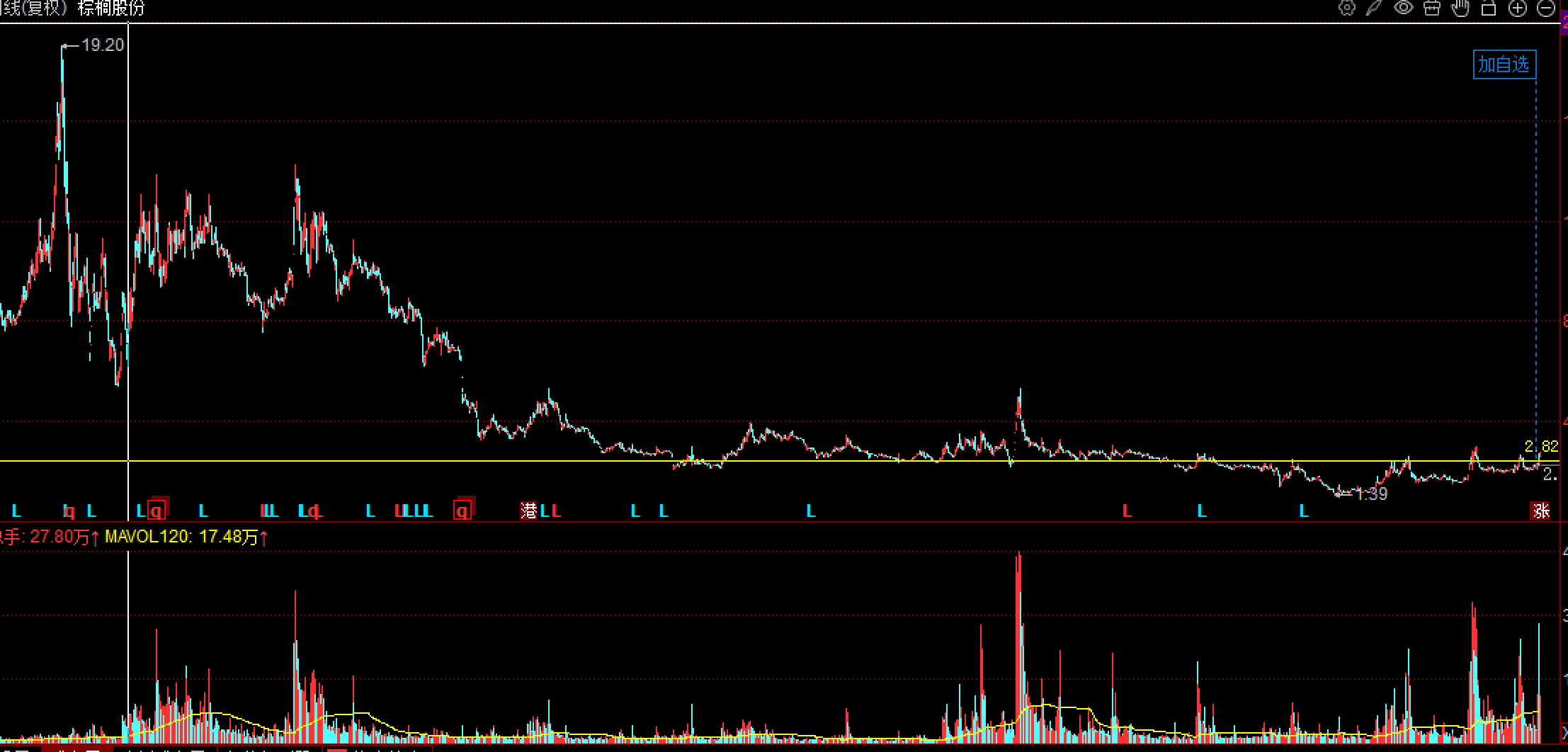 可立克,有过平台爆量,庄家成本16,这里就是震仓动作,拿长一点看到28.89。非常漂亮的操盘动作。