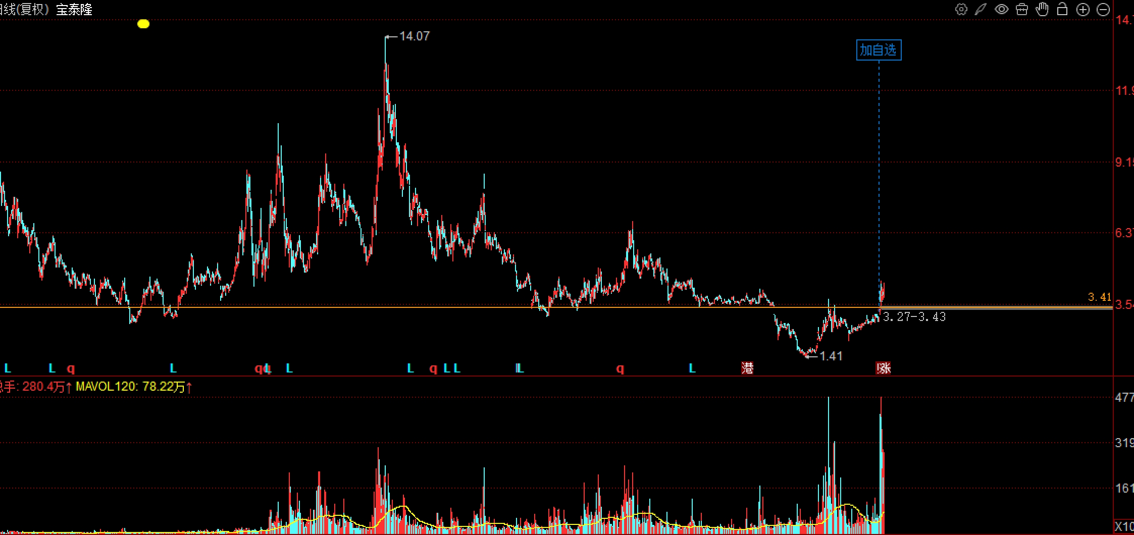 这票庄家成本3.4,在这个位置持续爆量绝对是震仓动作,虽然没有直接开启行情但反而是我们的机会的。不是平潭至少也要当做安泰集团对待。还是非常安全的区域的,庄家成本附件怕什么呢!无脑拿个一年赚个翻倍虽然有点吹、牛,但是概率不小的。