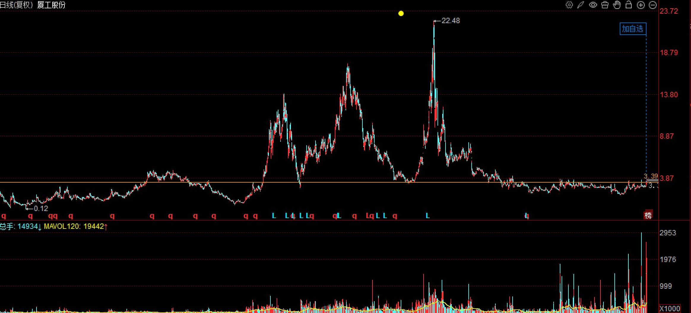 $厦工股份(SH600815)$ 昨天就在观察中了,但是票有点多就没说。这票如果只看近几年的走势就是标准的一个老庄股,多次的A杀堪称散户收割、机,走势太极端了,大资金不会看得上它的。可是一旦缩小就有意思了,这就变成了标准的长庄股。首先这里是历史大底,从15年结束一波行情以来后面都没有大动作了,在这个底部平台盘整了七八年之久。再则在这个底部,股友们可以看到这票经常放量,而且还不一般,经常放出这票的天量来。都说高位放量是出货,低位放天量是什么股友们可以想一想。在这种底部持续放量而又有平台压制就是标准的庄家控盘操盘痕迹,都说横长竖高,压制了这么久的动能一旦主升多么有力都不敢想。我前面挖掘的平潭发展,股友们可以看看是不是如出一辙?做票就得做这种,一看就是庄家仓位极重的长庄股,一旦主升翻倍行情轻轻松松,特别是现在还是牛市行情,像底部建仓未主升的票至少有上百家的好票还是非常值得博弈的。特别优质的票也不多,看到一个就要把握跟踪一下的。