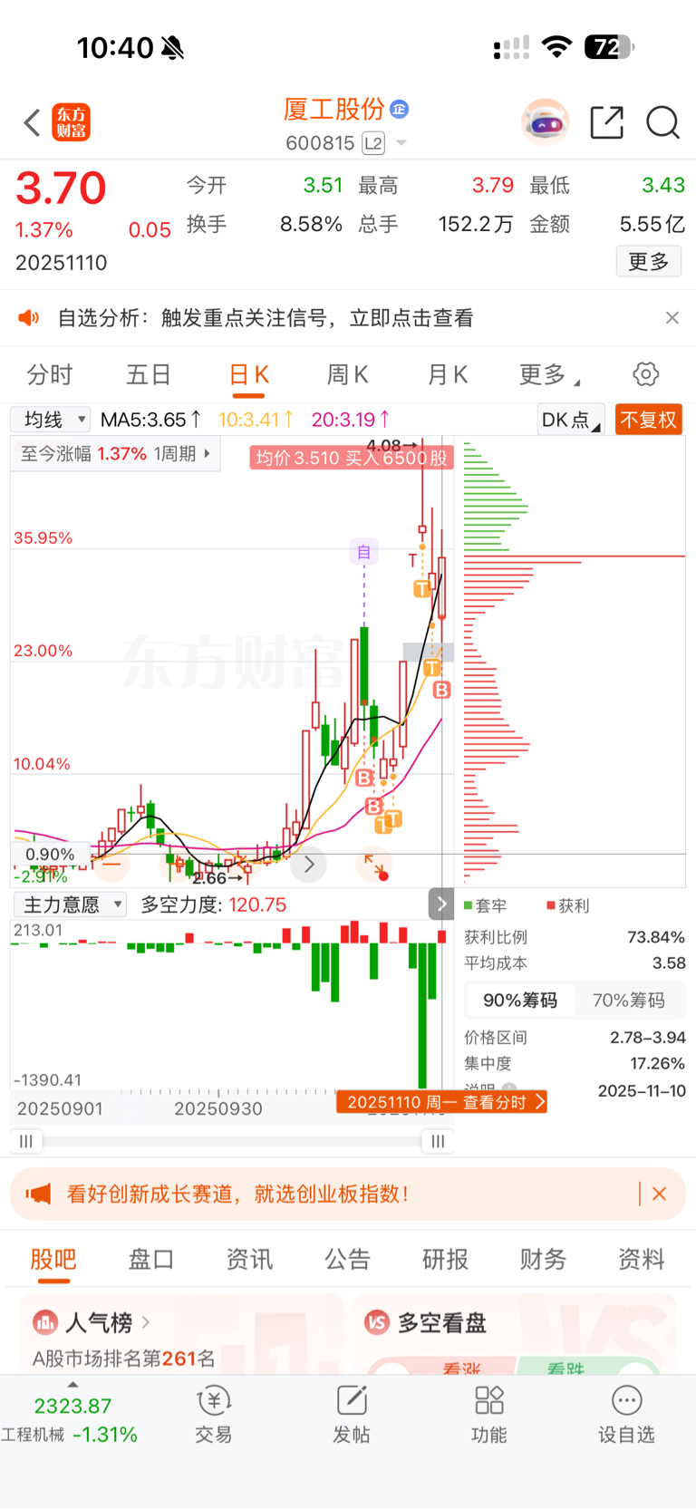 $厦工股份(SH600815)$ 主力那两条长长都盈利了,怕啥,干。