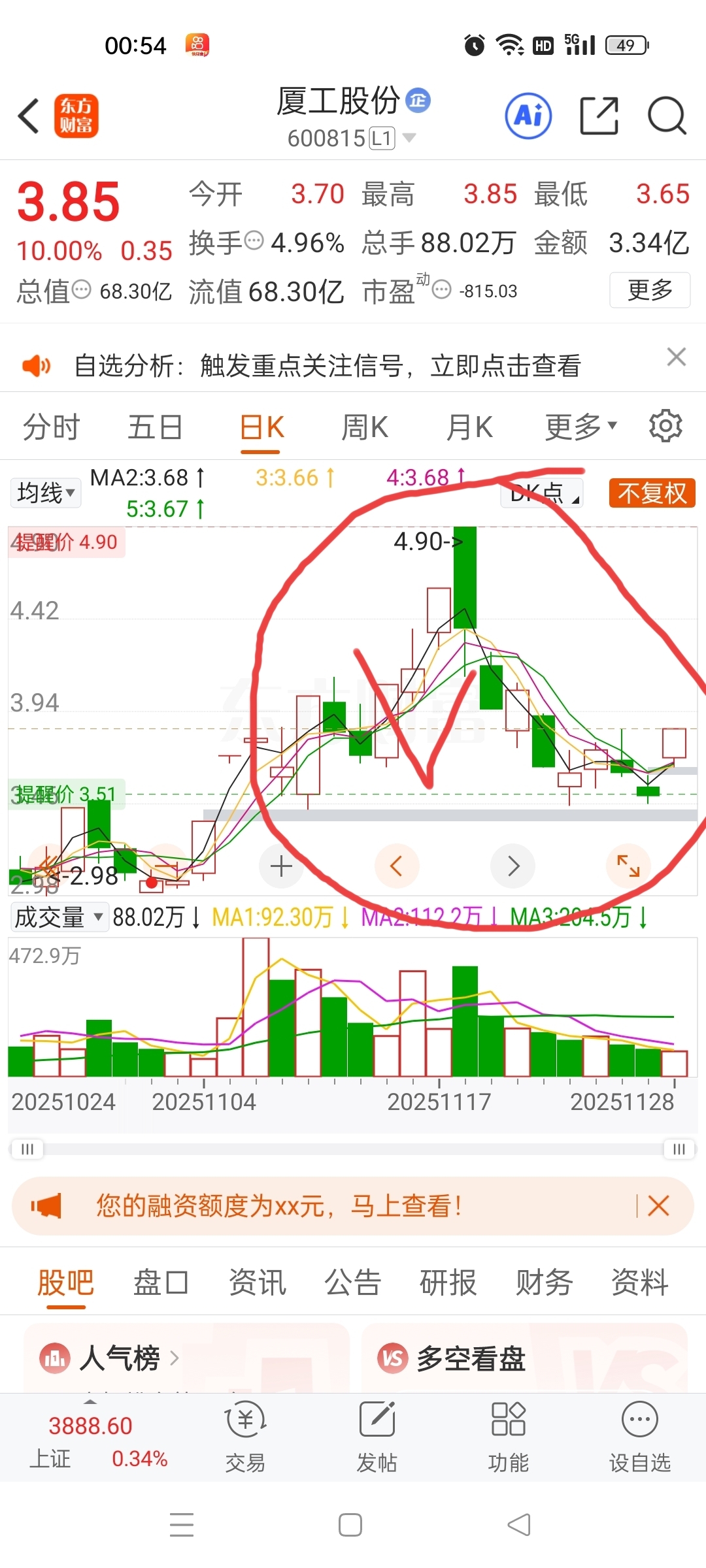 $厦工股份(SH600815)$ 这一轮都是一种资金在运作,就中间那一天有闲杂资金进来被主力按下去,第二天高开让他获利出局了,一直压盘吸筹完成周五拉涨停,突破上面阴线毫无压力,12月翻倍一点问题没有