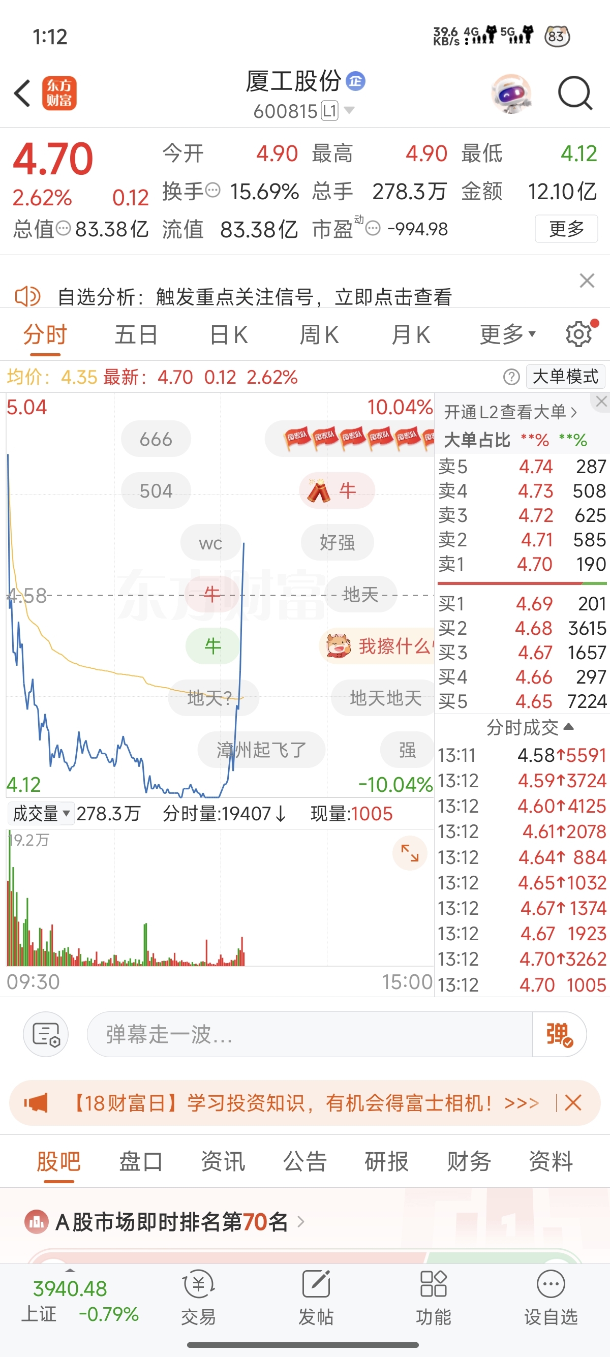 $厦工股份(SH600815)$ 能不能再来个涨停