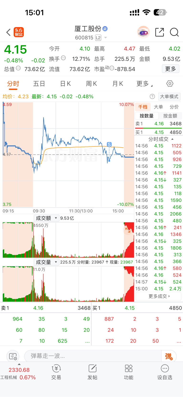 $厦工股份(SH600815)$ 红起的时候不卖 非要绿了卖 哦草还是绿一个点卖的 我真的是个大聪明
