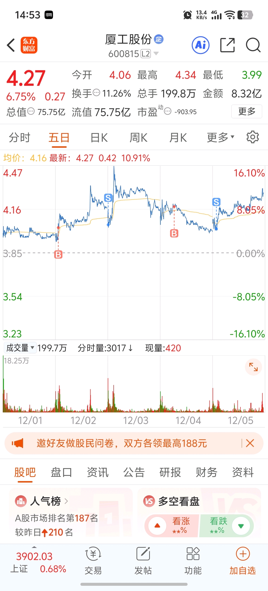 $厦工股份(SH600815)$ 精准买入,精准卖出。