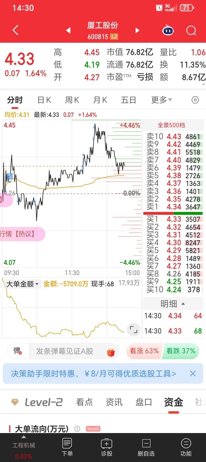 $厦工股份(SH600815)$ 陆续清仓,啦啦
