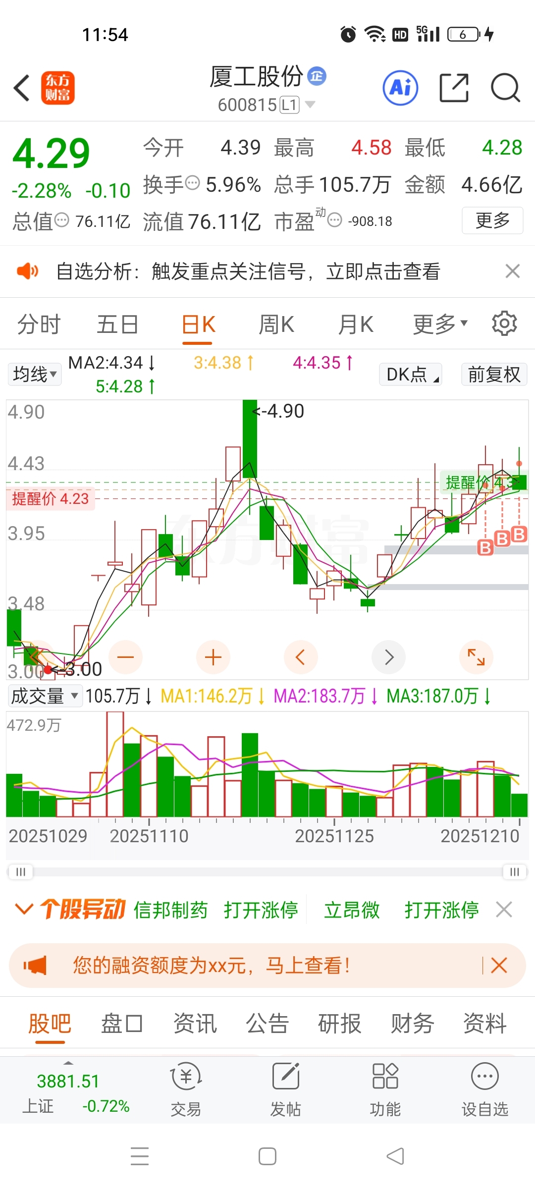 $厦工股份(SH600815)$ 连续加仓了,现在T都没做的,关键点位置怕飞
