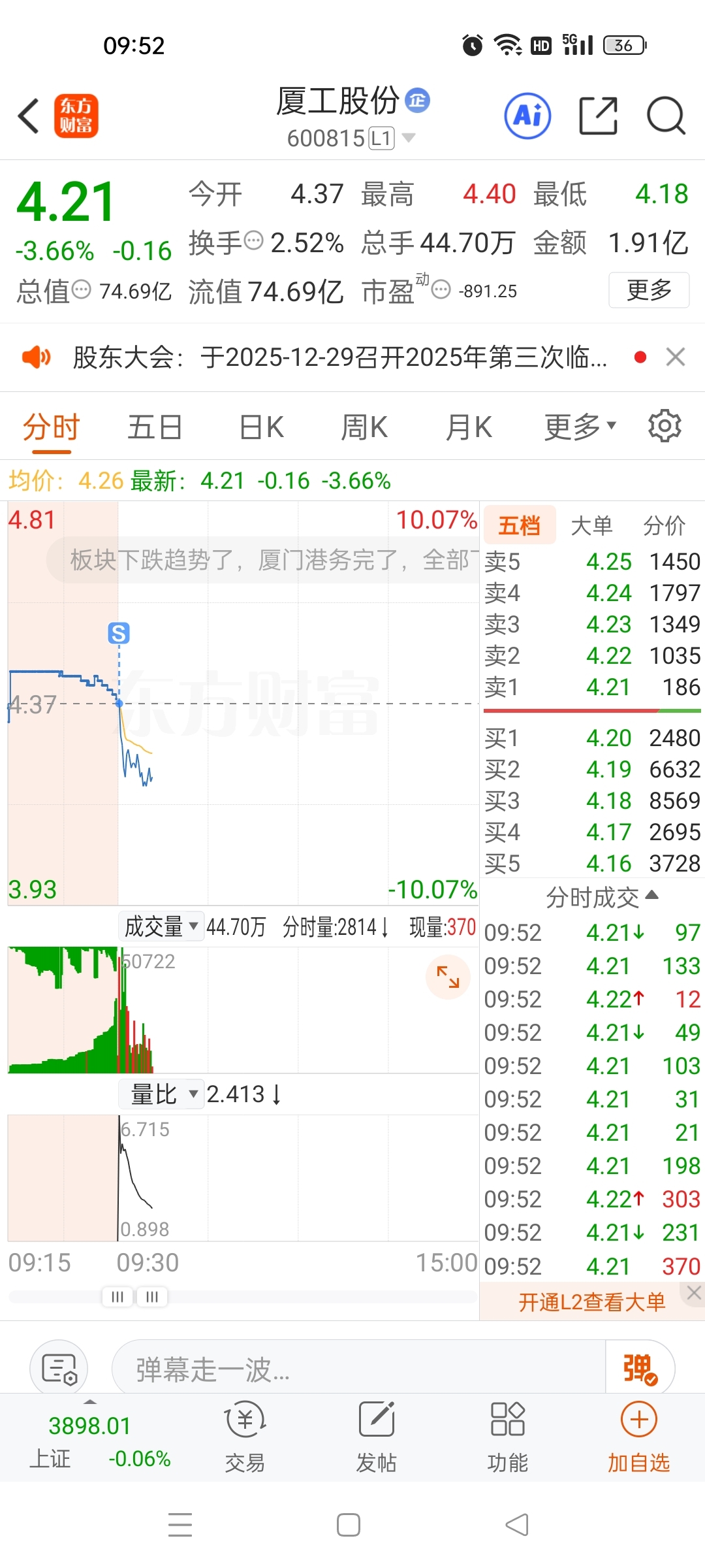 $厦工股份(SH600815)$ 清了,天天4.37围绕转