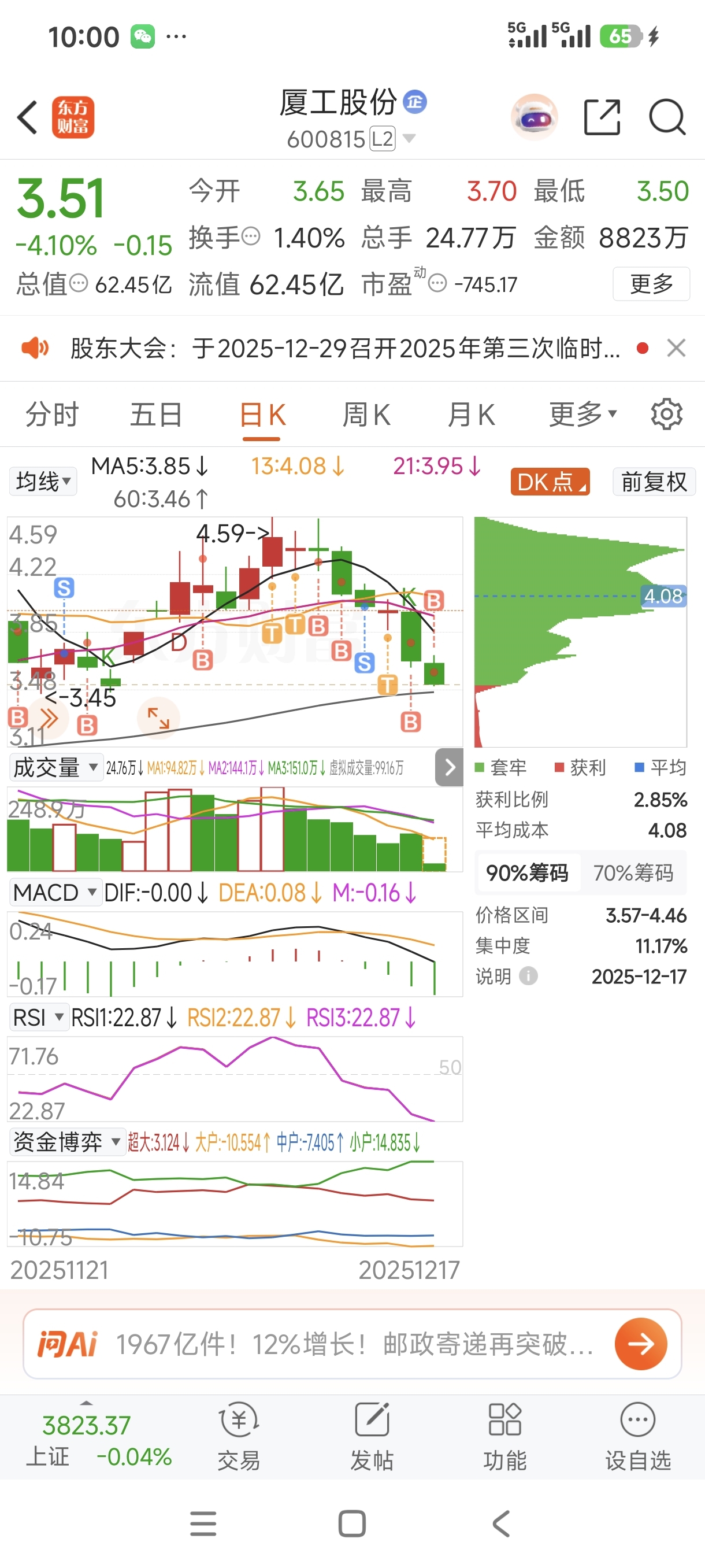 $厦工股份(SH600815)$ 一路补仓一路跌,感觉要套10年了,全部身家都在里面了。